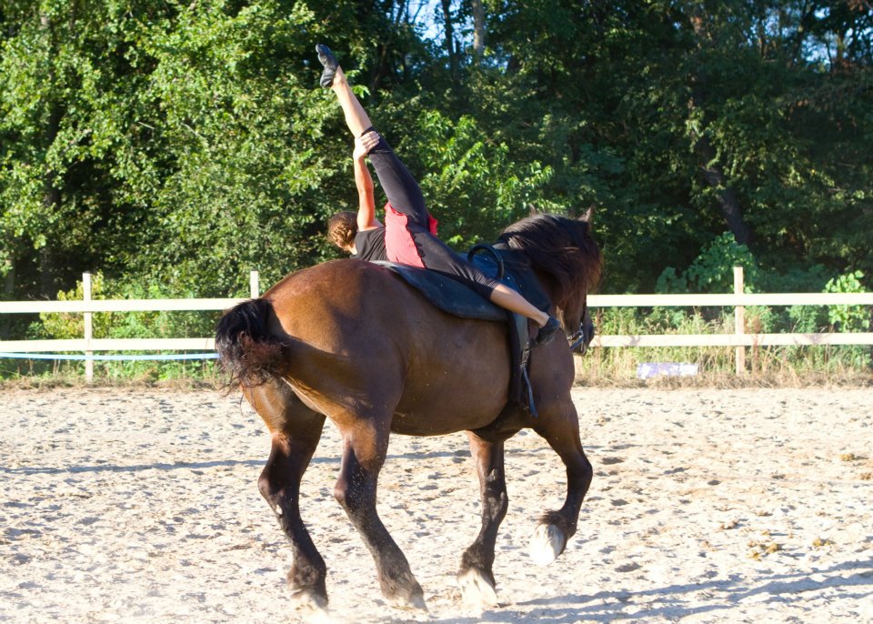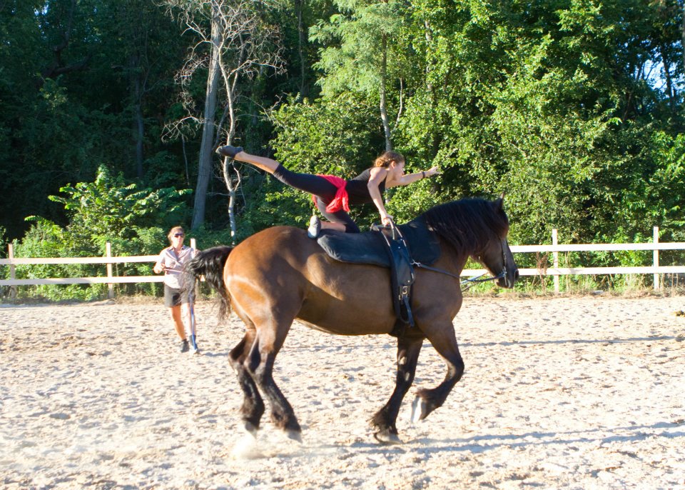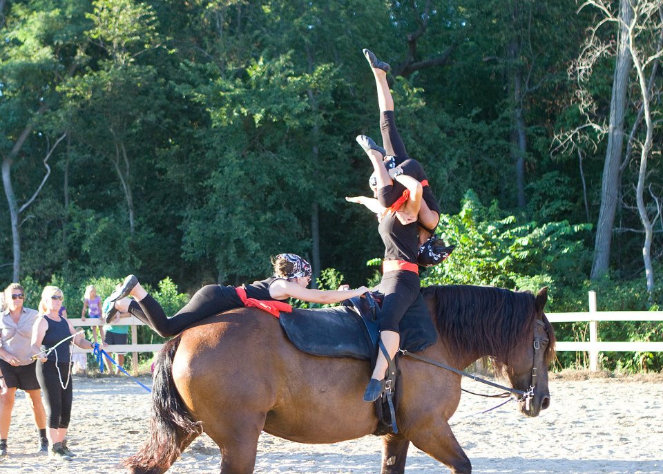 Video below taken August 16th, 2014 The vaulting team was asked to be the half time entertainment at the polo match