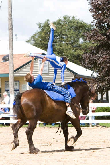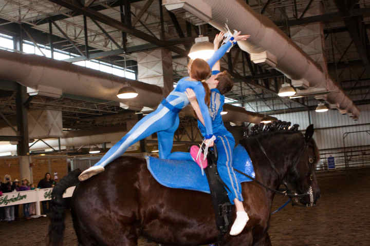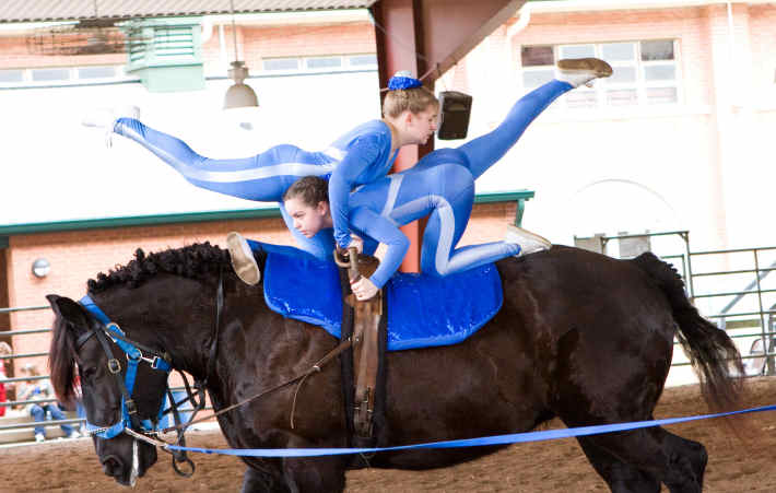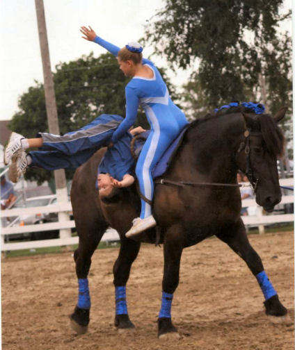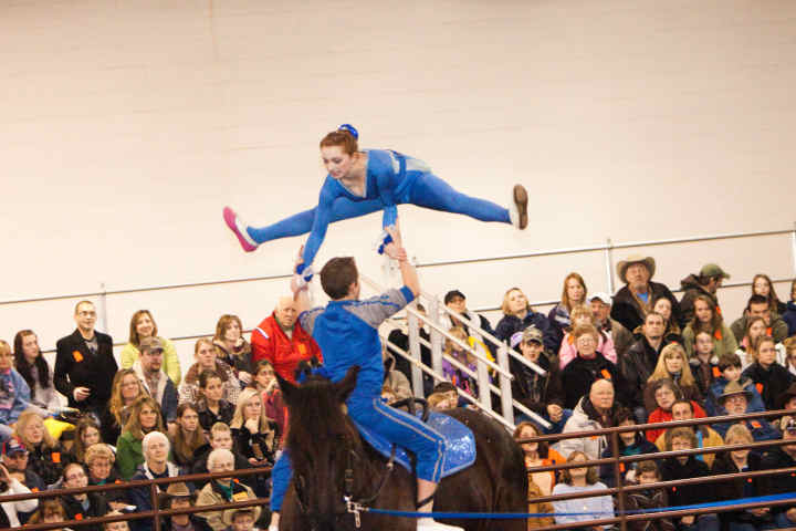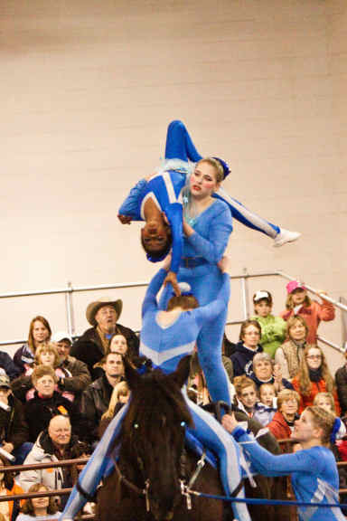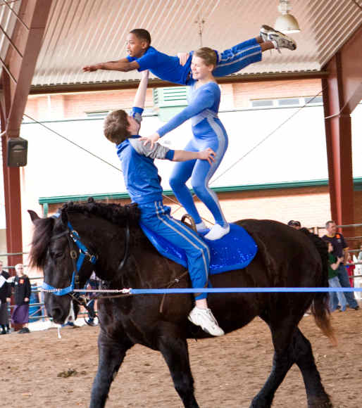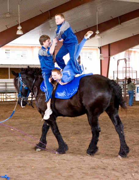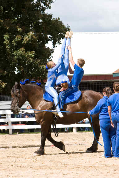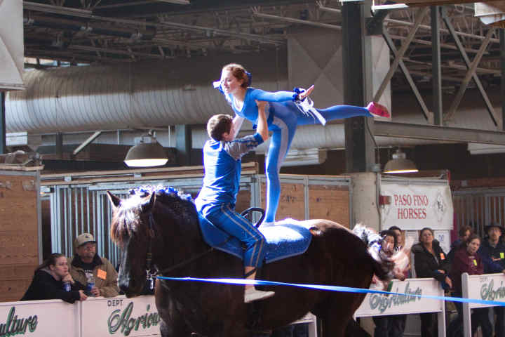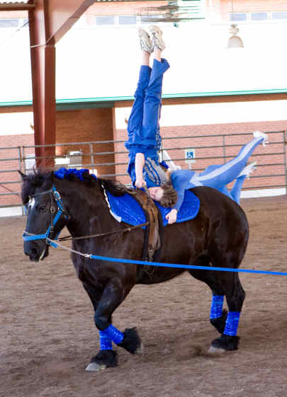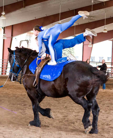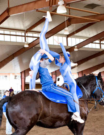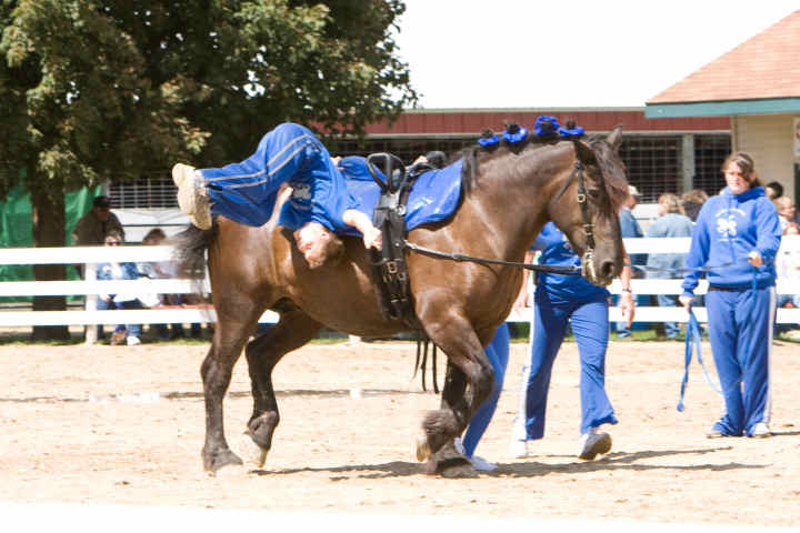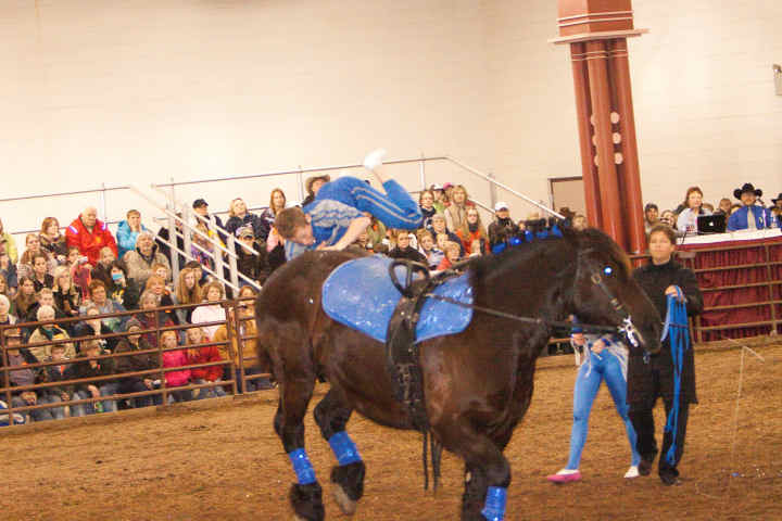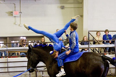 Below is vaulting at the 2010 Midwest Horse Fair in Madison, WI