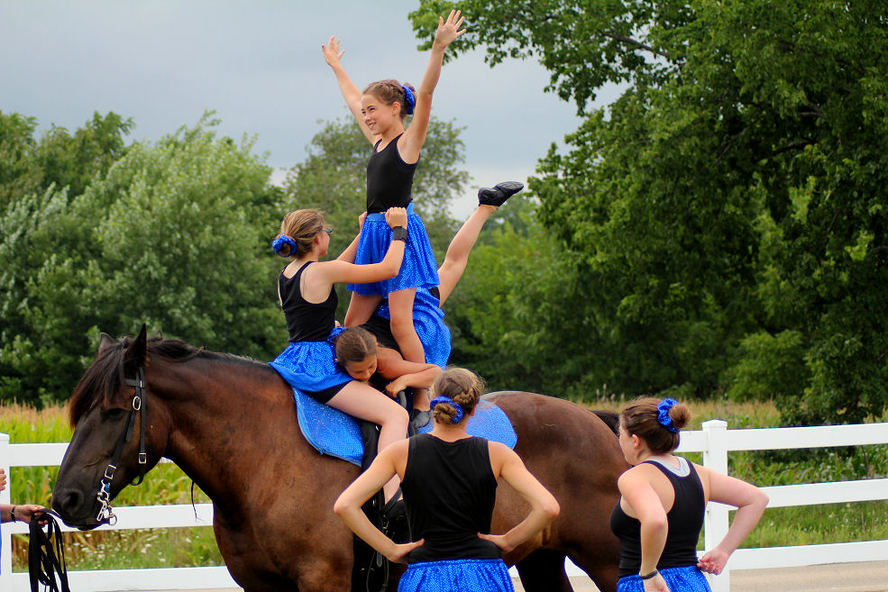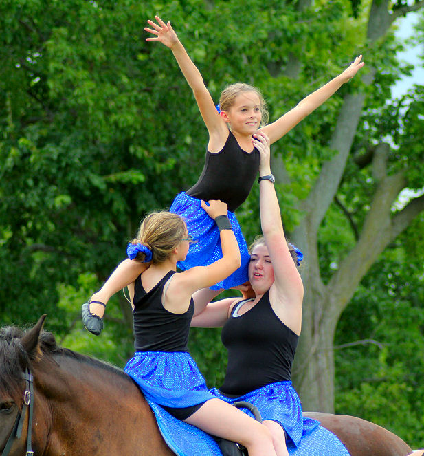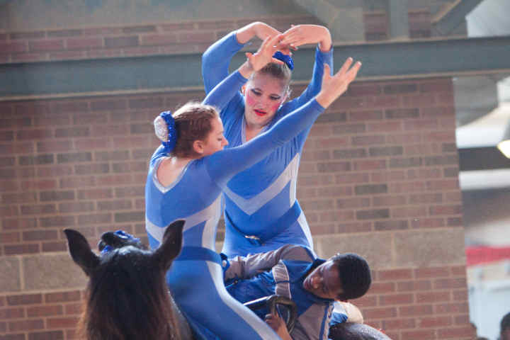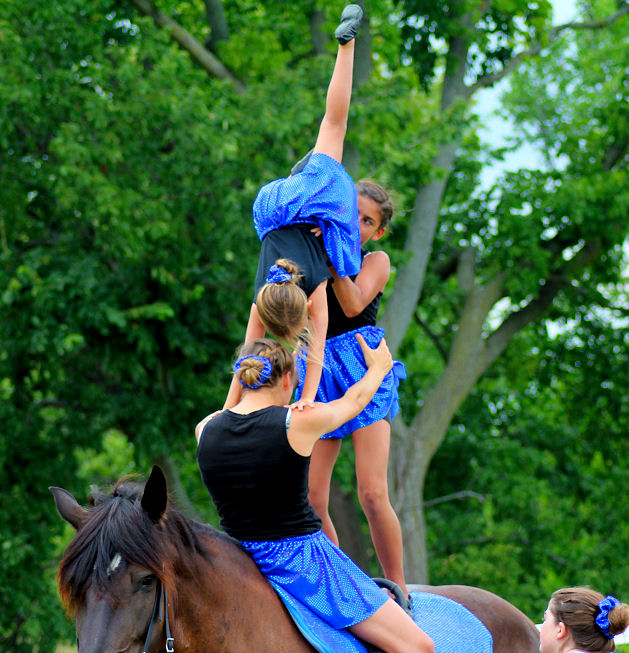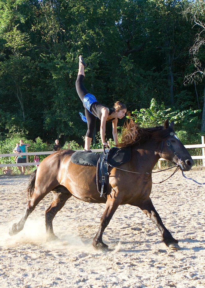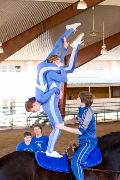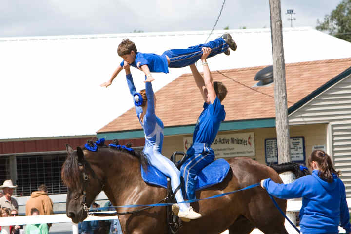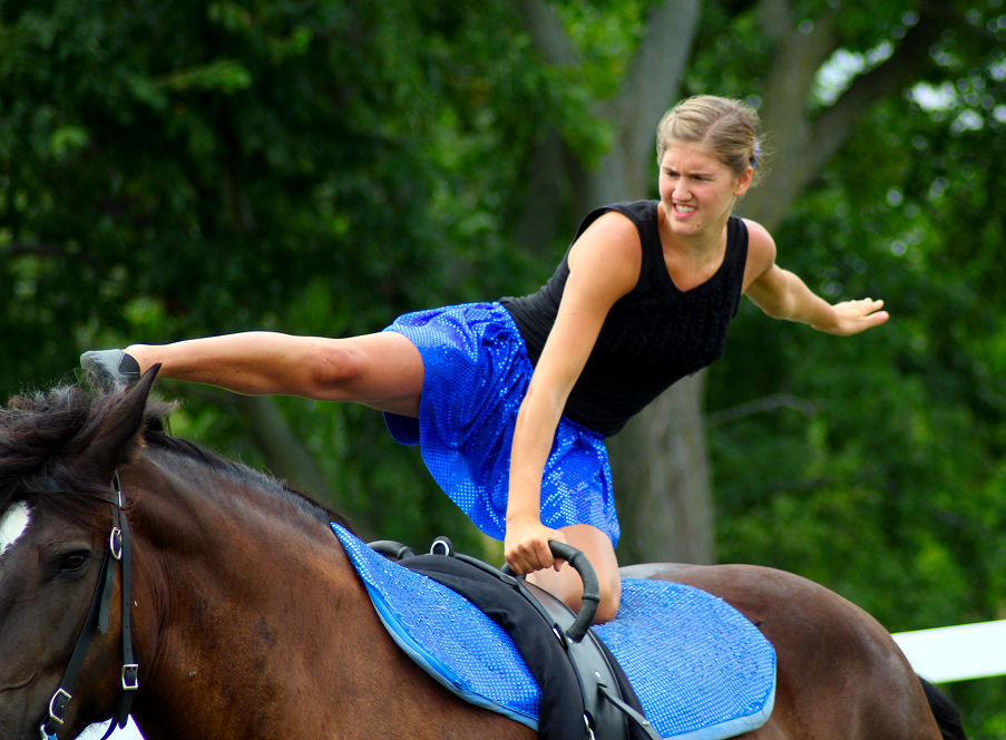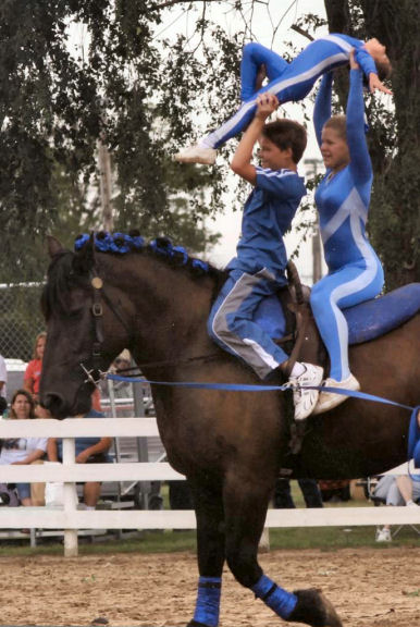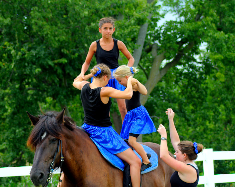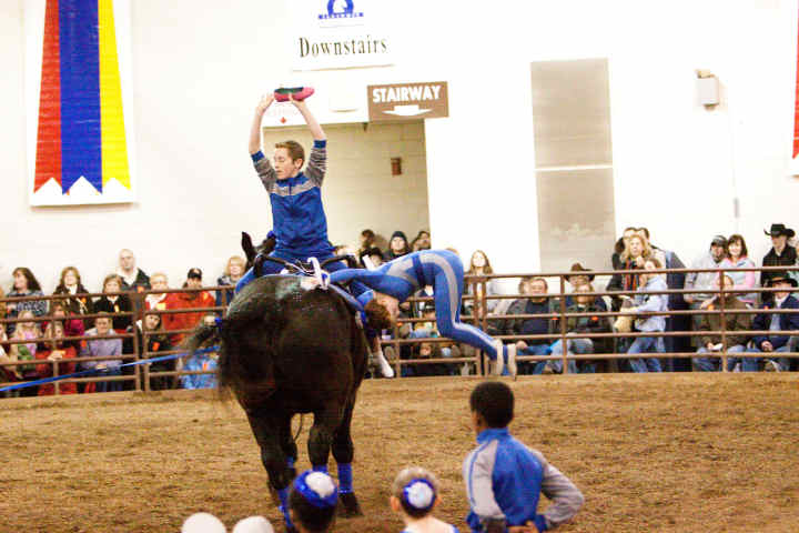 Below is vaulting at the 2010 Midwest Horse Fair in Madison, WI