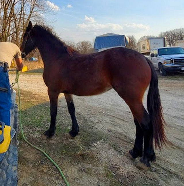 75% Friesian 25% Thoroughbred filly born May 29th, 2020 by Evan out of Jewel. She has wonderful conformation, is very tall, has great movement and has a sweet loving disposition. She is 16.1 hands. Scroll down for her foal pictures. She leads, loads, and stands tied.