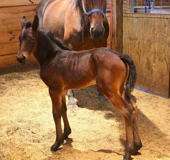 Pictures below of Jewel's filly taken May 30th, 1 day old.