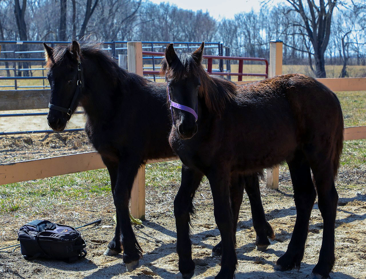 Good afternoon Judy, I thought I’d update you with some recent photos of Kenzie and Kiera. At 10 months old, they are both getting big and doing very well! You can see how huge Lily’s Kiera is getting! I included the last photo of the two of them eating so you can see how much bigger she is than Kenzie even though Kenzie is actually a day older! Sorry they weren’t groomed for the pictures—too cold out! I was so glad to see on your blog that Lily is expecting this Spring. I hadn’t seen anything on your “For Sale” page about her upcoming baby and thought maybe she didn’t get pregnant last year. She really throws good looking babies! I am so happy with her and Raven’s baby from last year! I’ll be looking for you at the Illinois Horse Fair in March. Take care, Jill