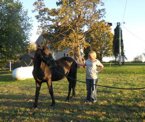 Judy, Abel is the most laid back colt i ever raised, we have worked him a lot ,Morgan climbed on him in the picture last night first time any one has been on him he did not care. You can put this on your website, I have owned horses for 30 years he is the calmest smartest colt I ever started. thanks Jeff