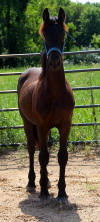 Pictures below taken at 6 days old. This colt had some diarrhea so was given IV's to make sure he did not get dehydrated. You can see the shaved part on his neck where the IV was inserted. He is strong and healthy and growing like a weed. He should end up over 16.1 hands and will have lots and lots of HAIR!