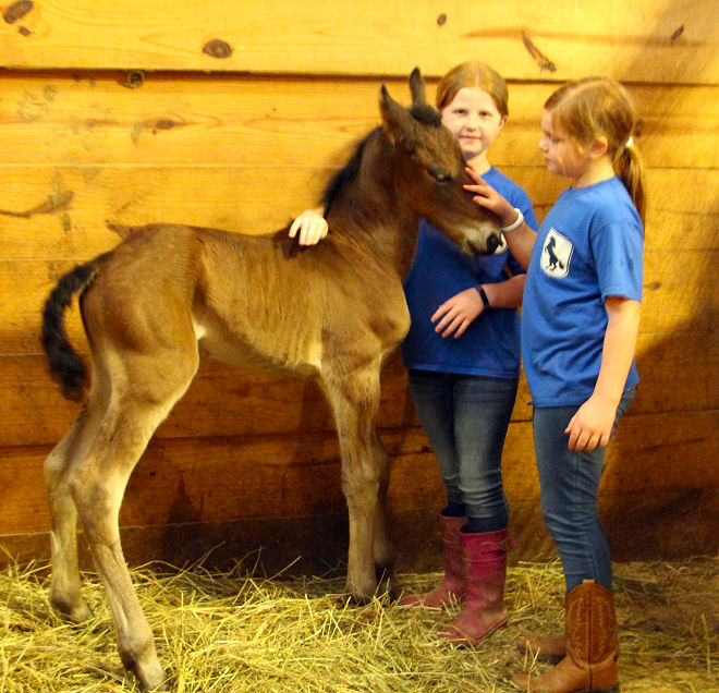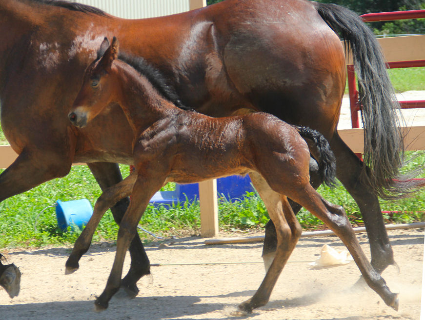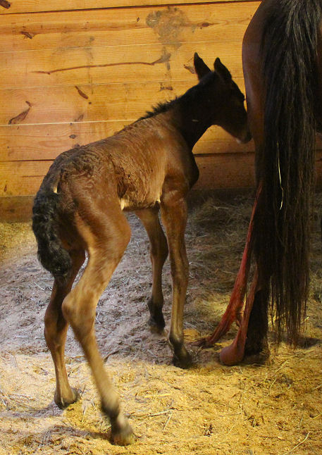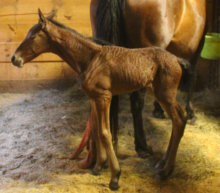 Pictures below of Jewel's filly taken May 30th, 1 day old.