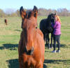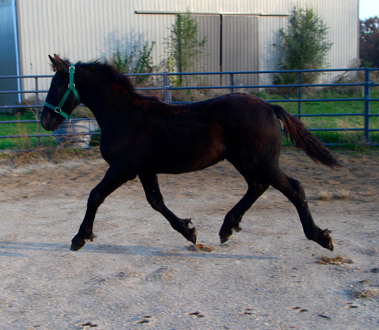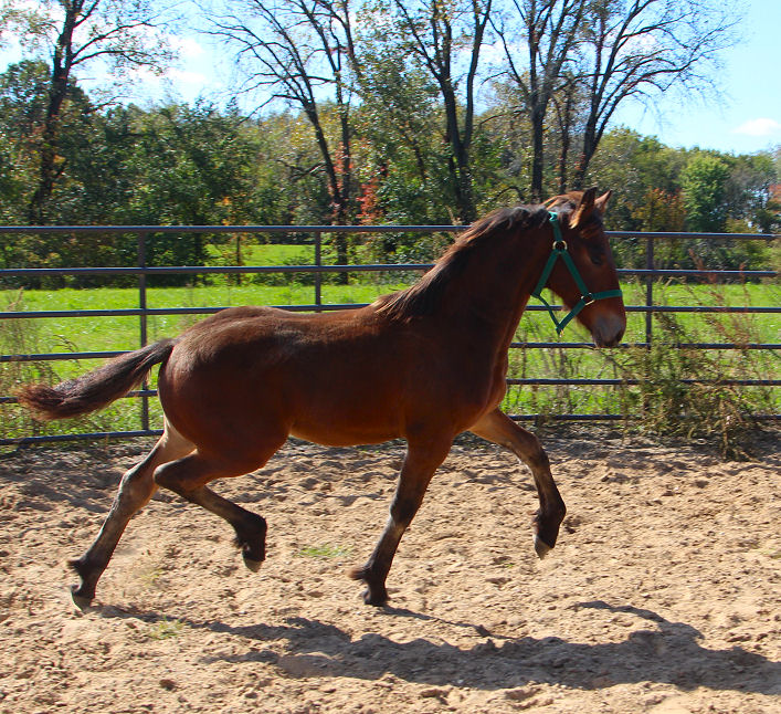 Pictures below taken October 3rd, 2011. Jewel spent the summer with Emily Ricketts getting lots of miles of walk, trot, canter, Western saddle, English saddle, bareback, single and double. She was also exposed to cows, sheep, pigs, dogs, cats and geese.