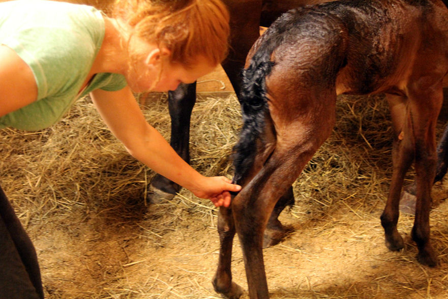 We have named her Treasure HM. Pictures below were taken at 1 day old, her first day out on the grass.