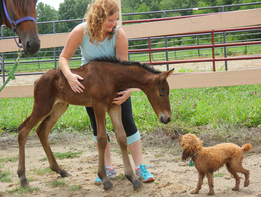 Jewel was bred to Evan and delivered a big beautiful bay filly July 4th, 2016. She is for sale for $5000.00 SOLD Pictured below on Nov 9th, 2016