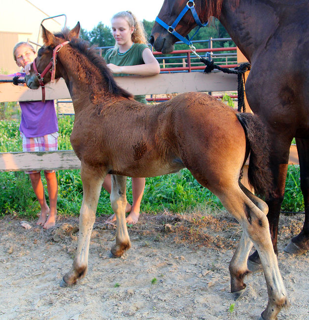 Jewel delivered a big bright bay colt by Evan on June 20th, 2015. This colt is tall 75% Friesian 25% Thoroughbred and very well built. He will excel in combined training and especially dressage. He is for sale $5000.00 SOLD