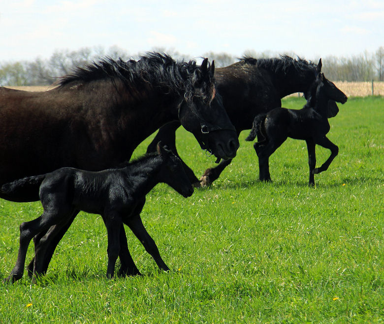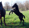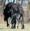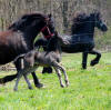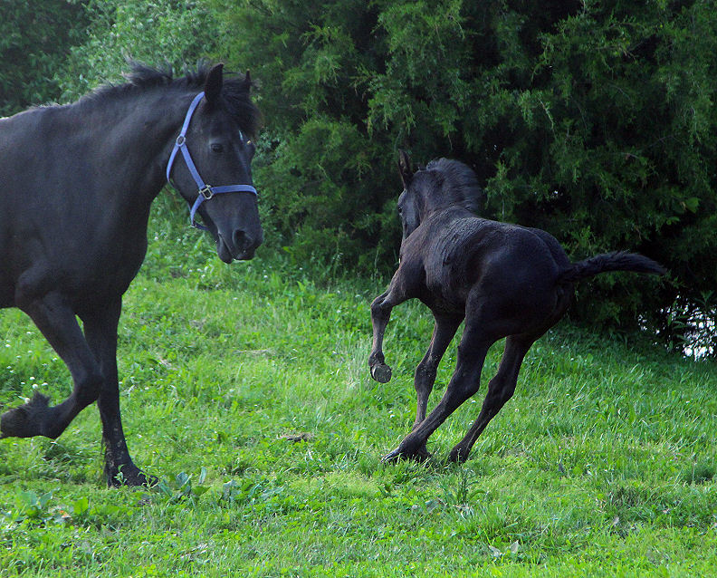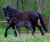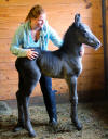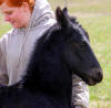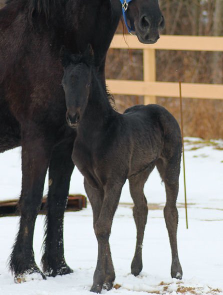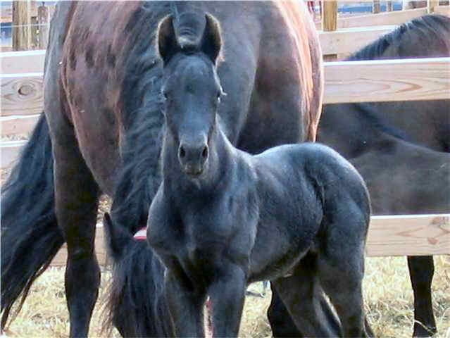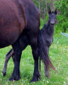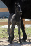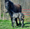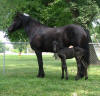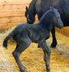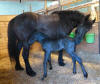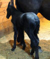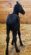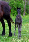 Lily, our 17 hand half Friesian half Westfalan surprised us with a beautiful all black filly April 28th, 2009 by our Friesian stallion RAVEN. She is black with no markings and 75% Friesian 25% warm-blood. We named her Ciera, she is registered with Friesian Heritage Horse & Sport International. SOLD In the pictures below she is only 1 day old.
