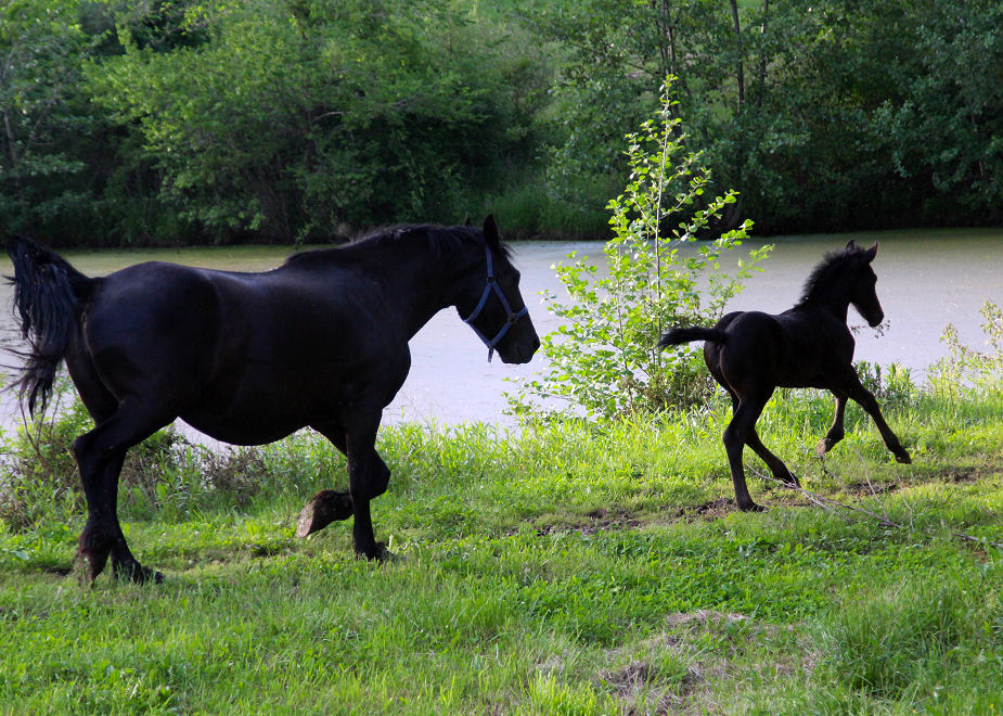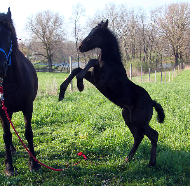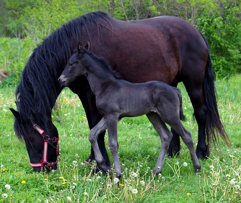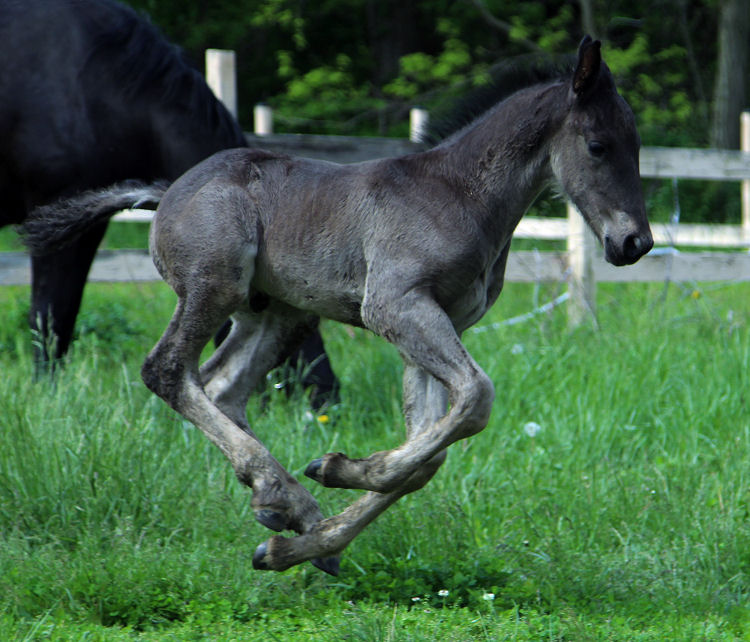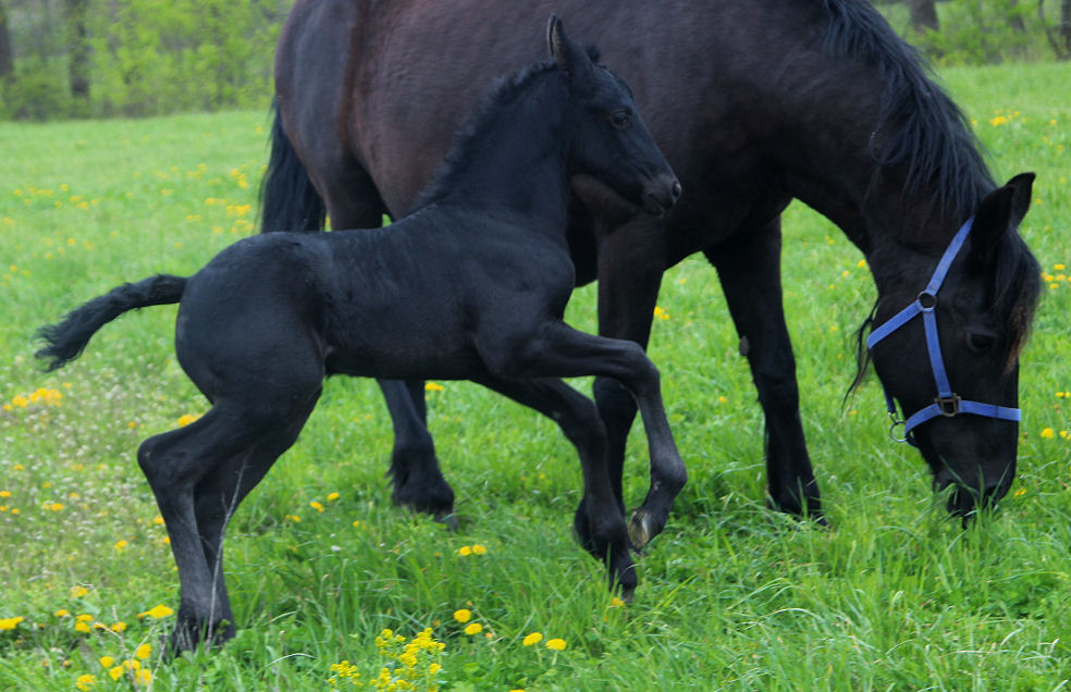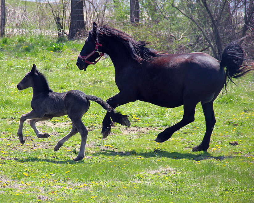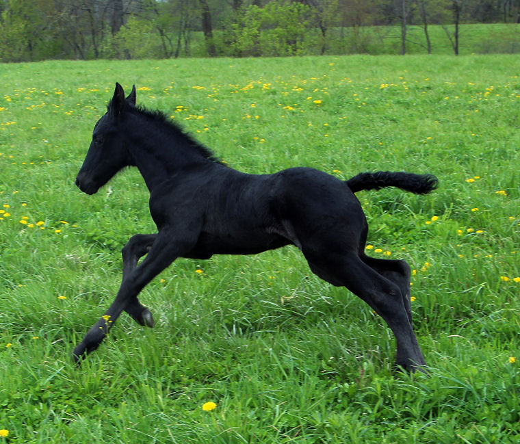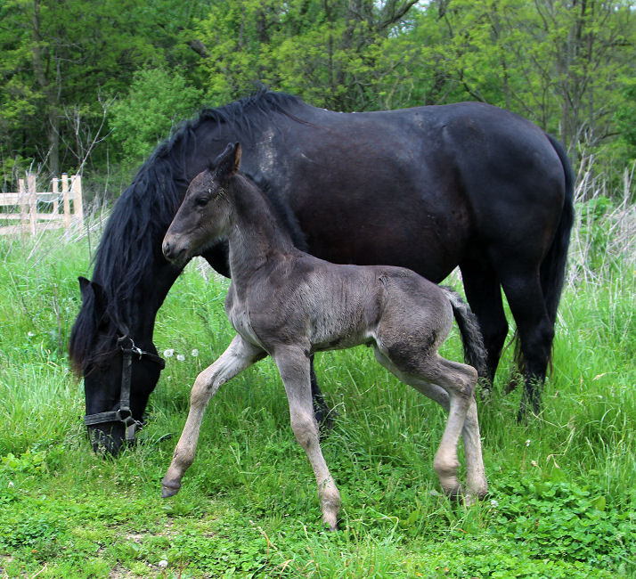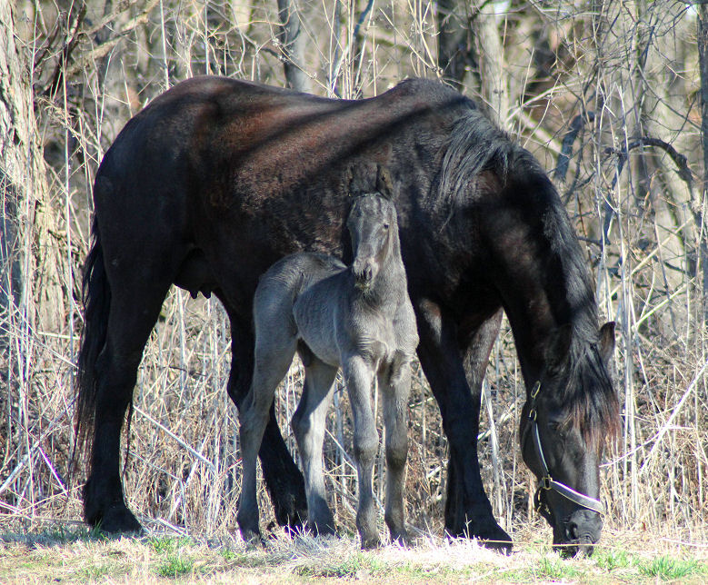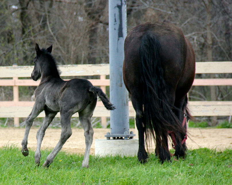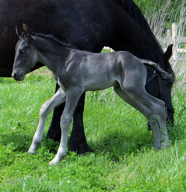 Lily delivered a gorgeous all black silver tipped very tall colt March 23rd, 2015 This colt is for sale $5000.00 SOLD! He will be tall, at least 16.3 hands, have an abundance of hair, and have amazing movement. He will be registered with Friesian Heritage Horse as soon as he is named. This colt is 75% Friesian but looks and moves like a purebred.
