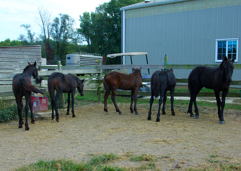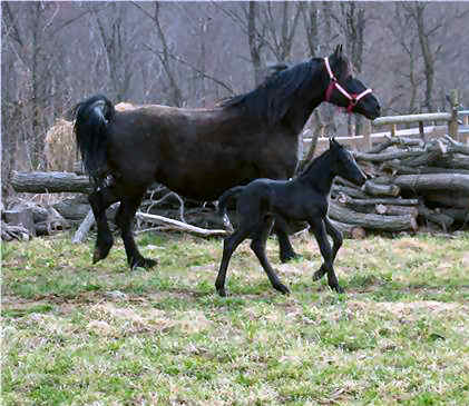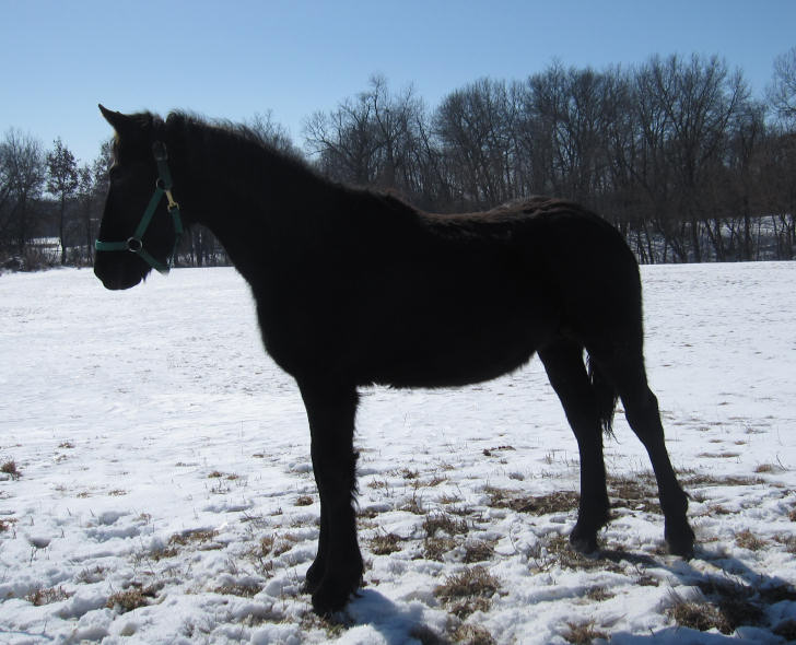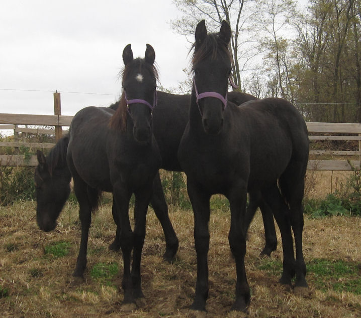 Lily is pictured below Nov 29th, 2012 at the Middle Grove farm. She was bred back to Raven and delivered a beautiful all black filly Feb 18th, 2013. Click HERE for pictures.