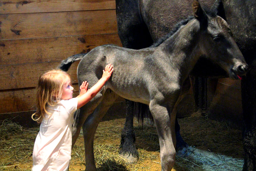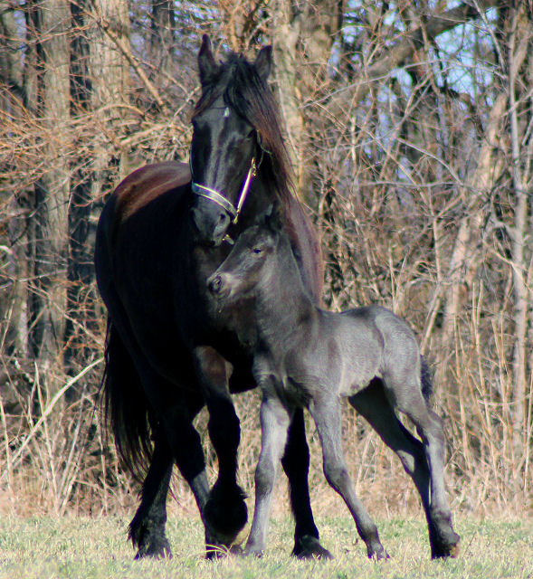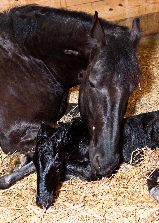 Lily delivered ANOTHER big black filly by Raven March 18th, 2011 Rachel Sauder of momentscapturedbyrachel.com came over to take pictures of Lily meeting her newborn filly now named Keira (Irish for dark) . Is there anything more precious than the first time a mare meets her newborn foal? Keira (Keer-uh) will be for sale at weaning for $5000.00 SOLD. She will be 16.3 or taller, she already has amazing movement AND she is a RAVEN daughter so qualifies for a reduced breeding fee of $500.00 to our Friesian stallion EVAN at age 3.