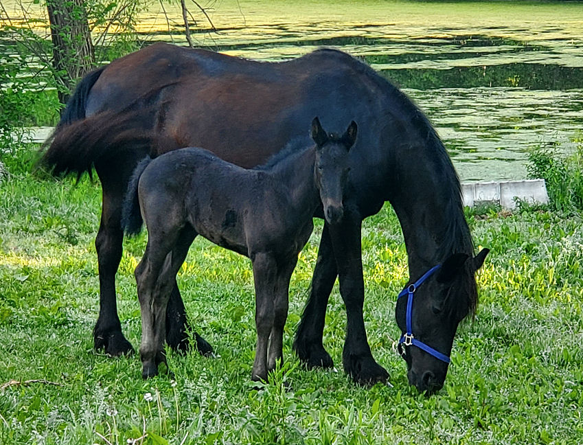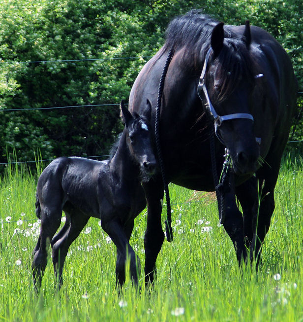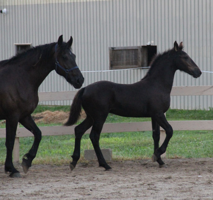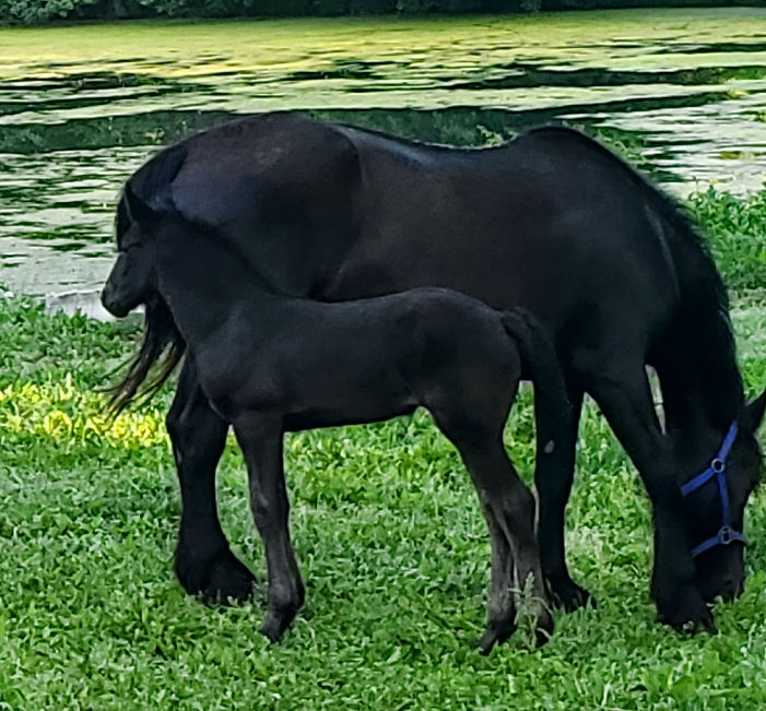 Lily was bred to Valiant and delivered a beautiful black filly with a star on May 16th, 2019. She will be tall, black, lots of hair and have amazing movement. Filly only is for sale $5000.00 SOLD!