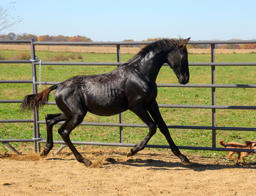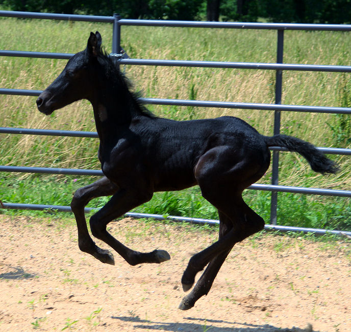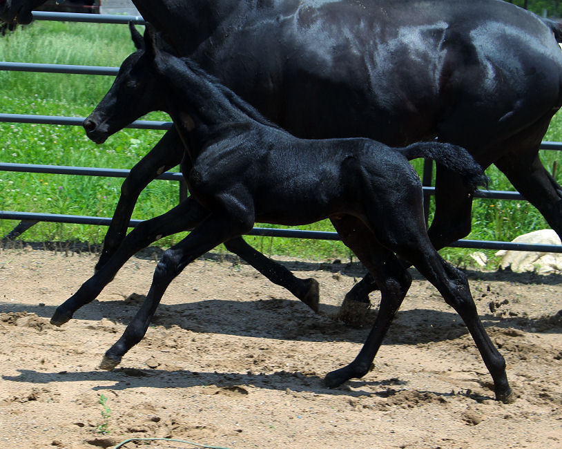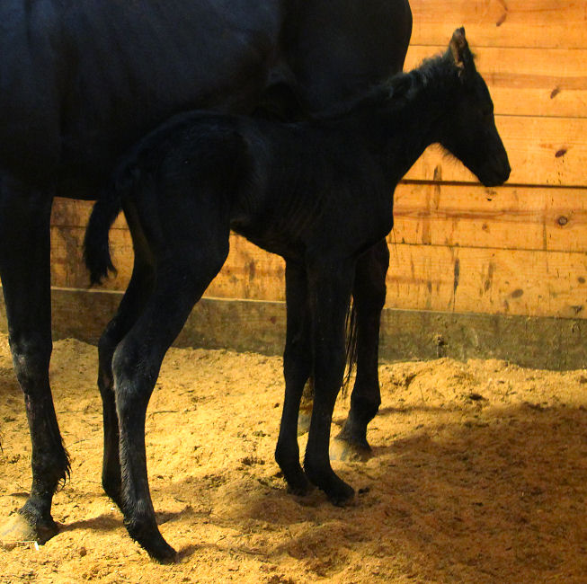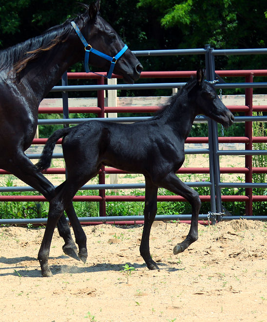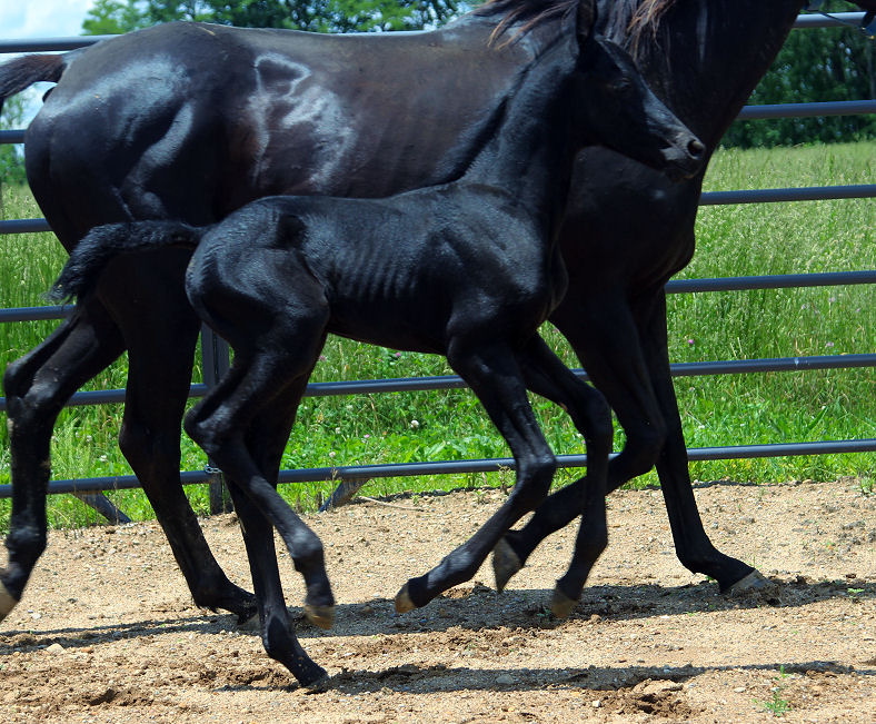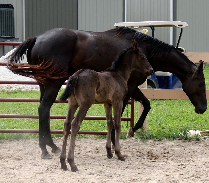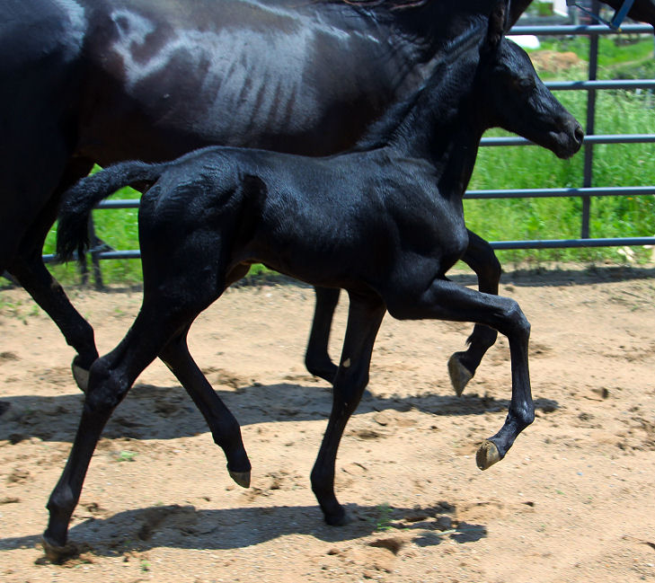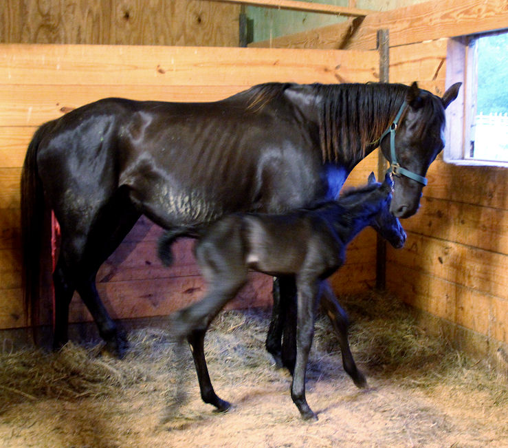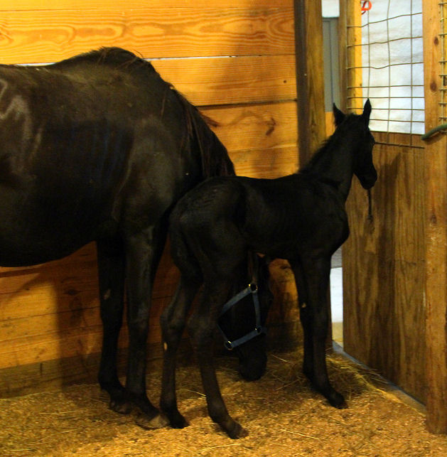 Sheena was bred to Valiant and delivered a big black beautiful colt May 4th, 2015 colt only for sale $4000.00 SOLD. This mare has amazing free movement and the colt will be spectacular, Sheena is a very kind, sweet, loving mare. Her pedigree in the Thoroughbred world is first class with her great grandfather Unbridled winning the Kentucky Derby, her grandfather Unbridled Song running in the Kentucky Derby and coming in 5th and her father Song and a Prayer also running in the Kentucky Derby. We expect this boy to be a beautiful black superstar.
