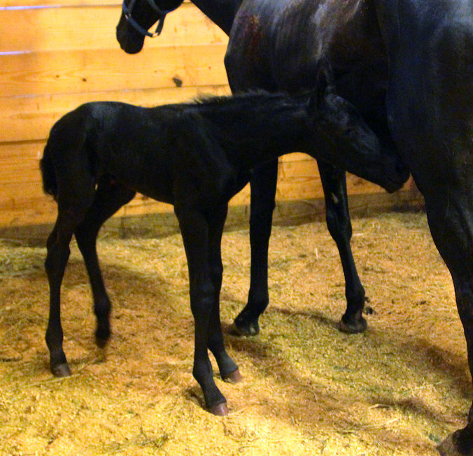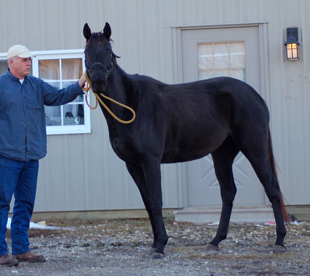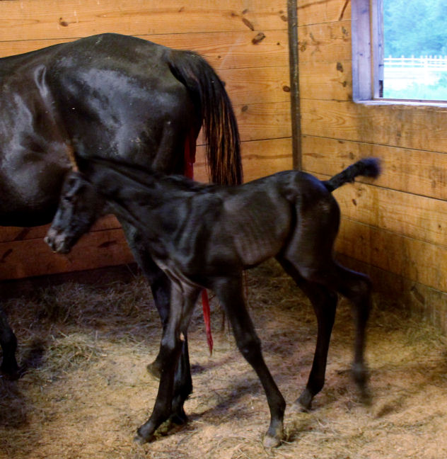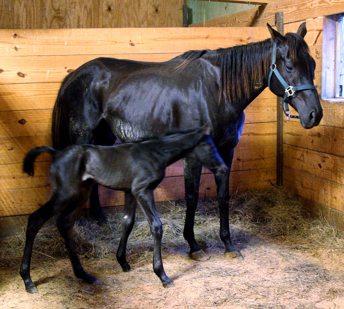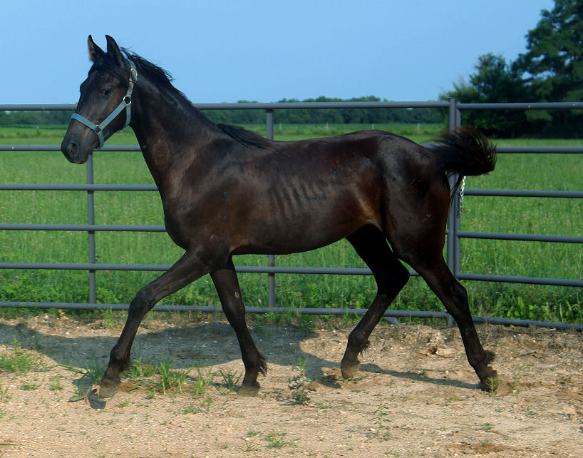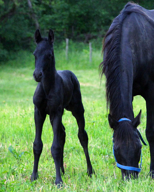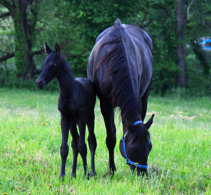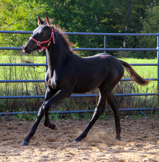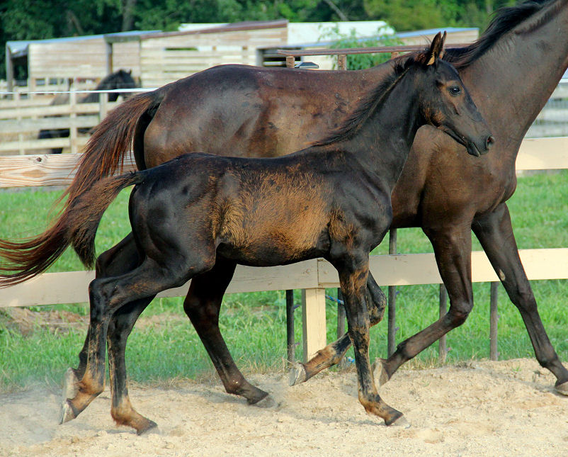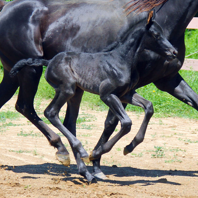 Sheena was bred to Valiant and delivered a big black beautiful colt May 4th, 2015 colt only for sale $4000.00 SOLD. This mare has amazing free movement and the colt will be spectacular, Sheena is a very kind, sweet, loving mare. Her pedigree in the Thoroughbred world is first class with her great grandfather Unbridled winning the Kentucky Derby, her grandfather Unbridled Song running in the Kentucky Derby and coming in 5th and her father Song and a Prayer also running in the Kentucky Derby. We expect this boy to be a beautiful black superstar.