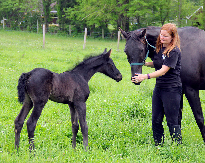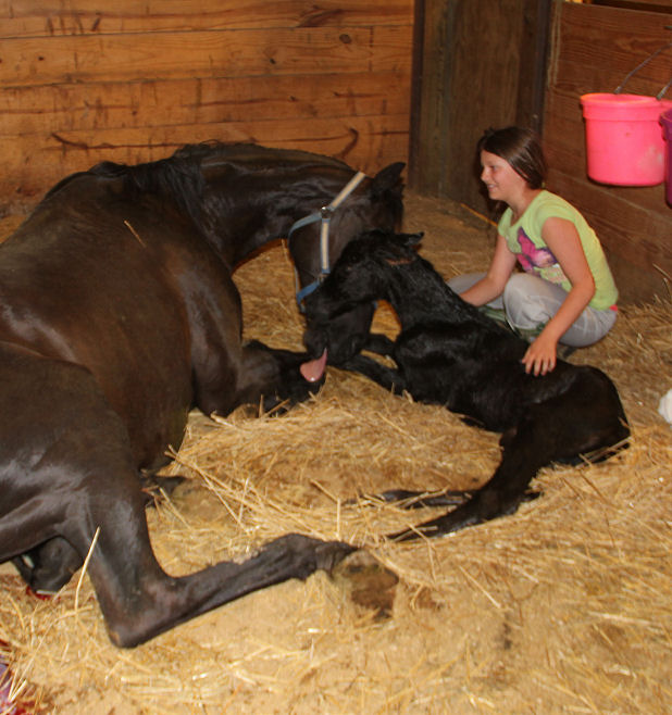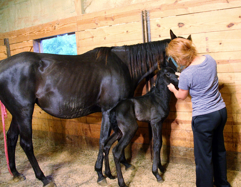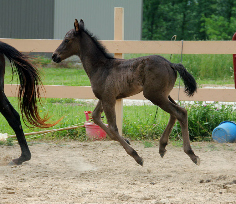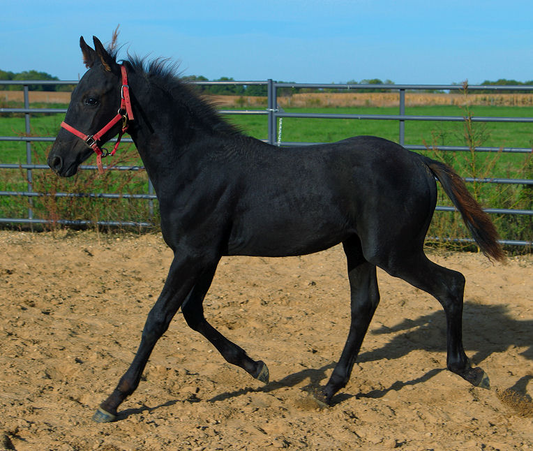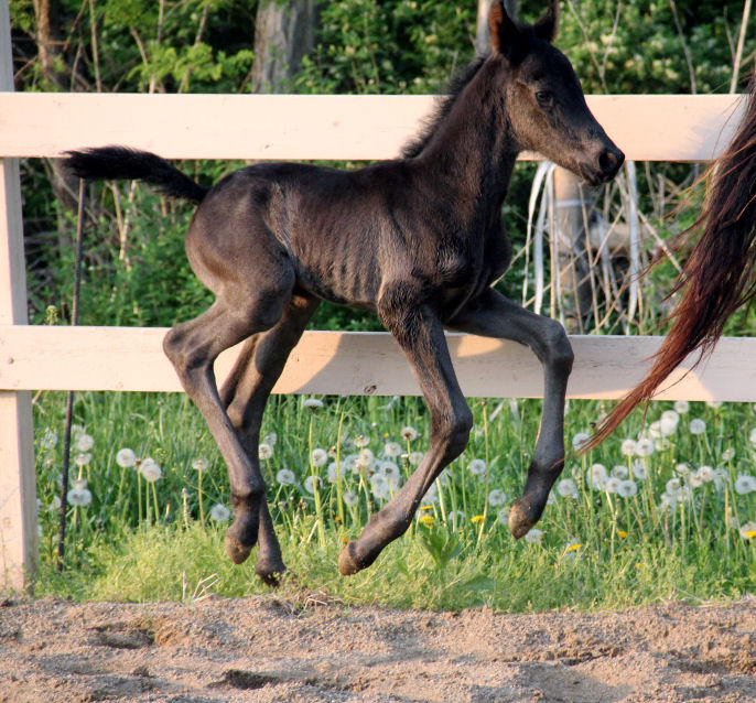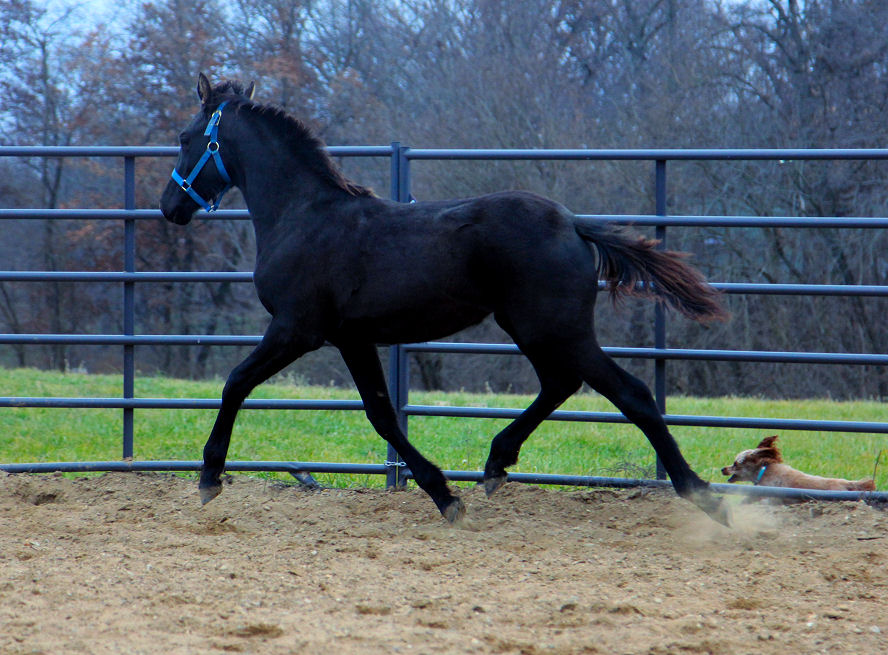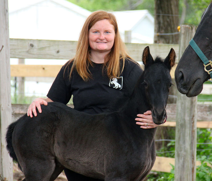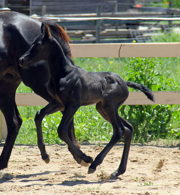 Sheena was bred to Valiant and delivered a big black beautiful colt May 4th, 2015 colt only for sale $4000.00 SOLD. This mare has amazing free movement and the colt will be spectacular, Sheena is a very kind, sweet, loving mare. Her pedigree in the Thoroughbred world is first class with her great grandfather Unbridled winning the Kentucky Derby, her grandfather Unbridled Song running in the Kentucky Derby and coming in 5th and her father Song and a Prayer also running in the Kentucky Derby. We expect this boy to be a beautiful black superstar.