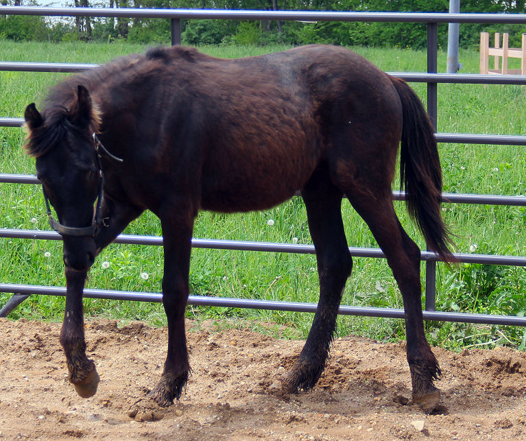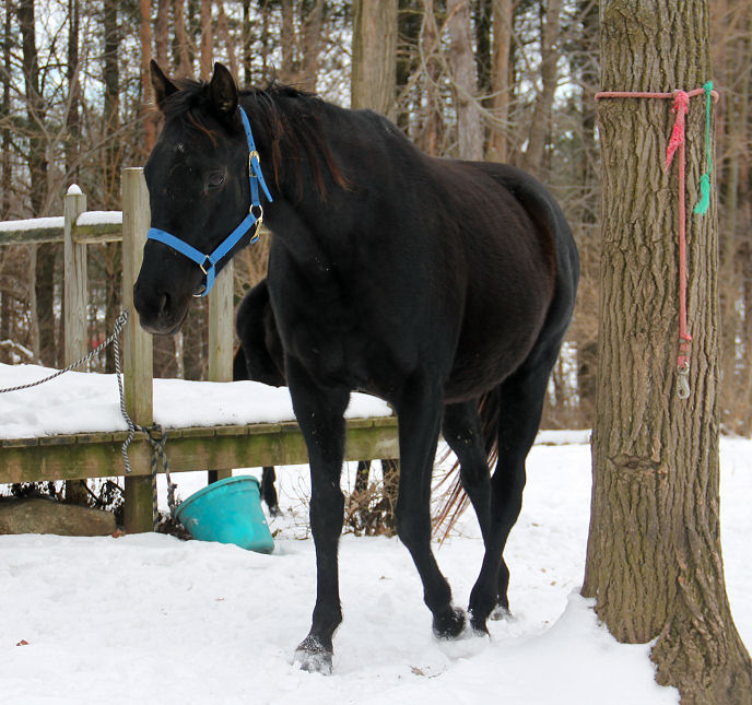 Pictured below right off the trailer the day she arrived at the Horsemeister Farm Dec 28th, 2013