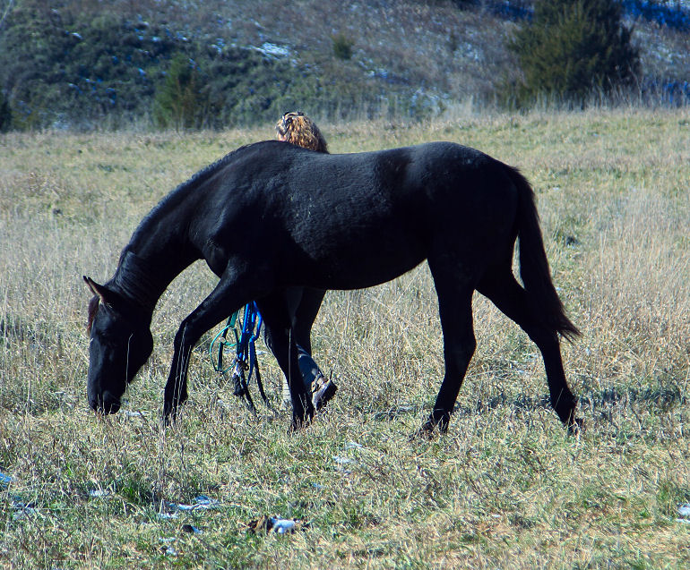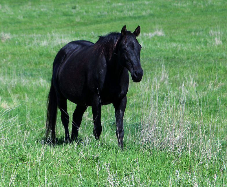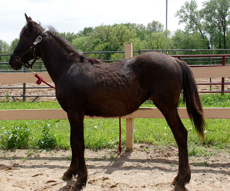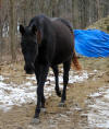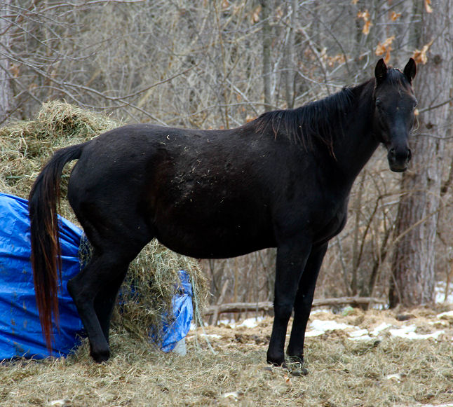 Foaled May 22nd, 2008 barn name Sheena, is a 16 hand dna tested homozygous black Jockey Club registered Thoroughbred mare. Sheena will be bred in 2024 for a 2025 foal which will not be for sale. She is pictured below on May 4th, 2024.