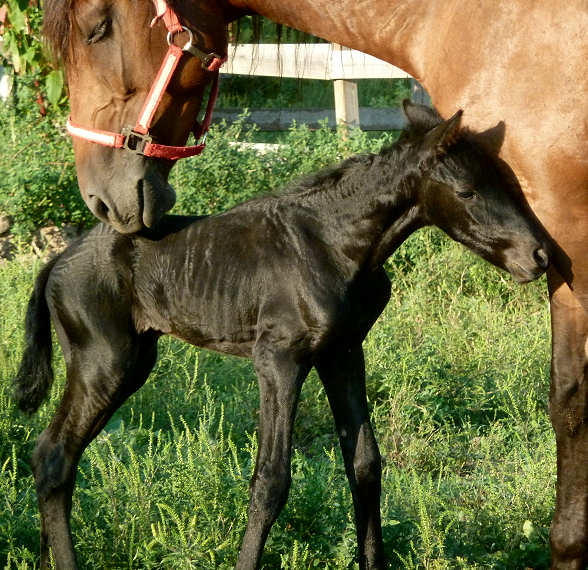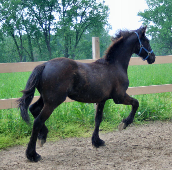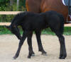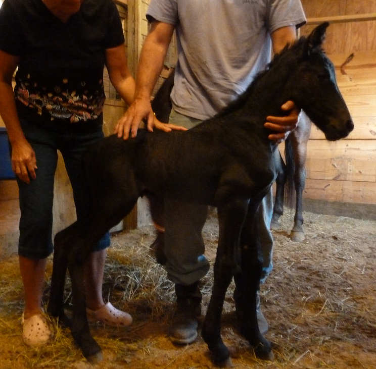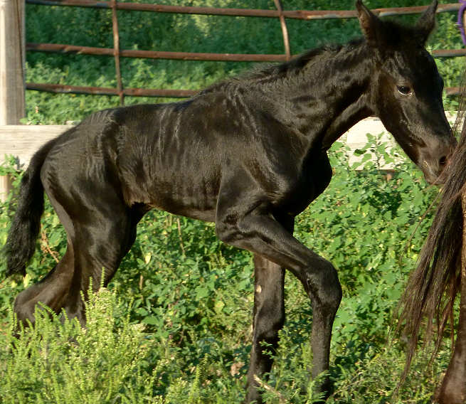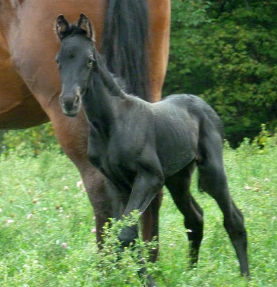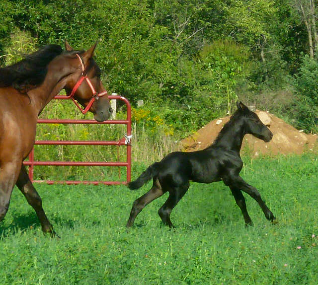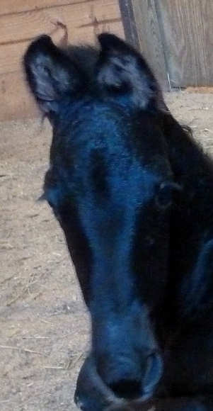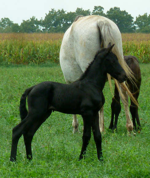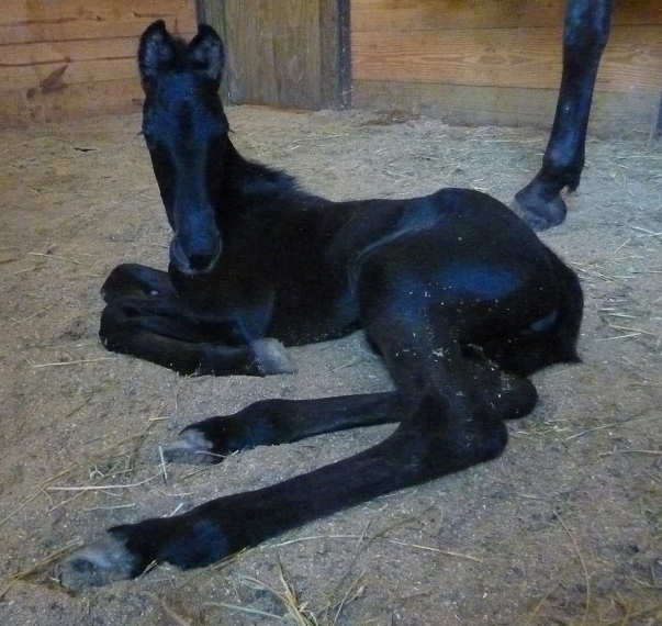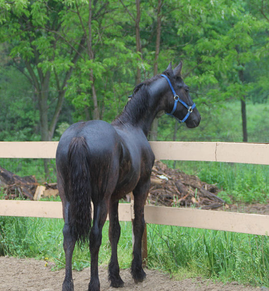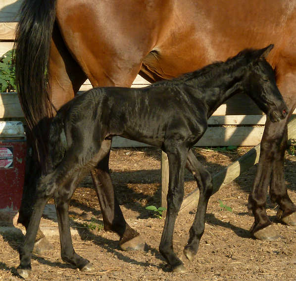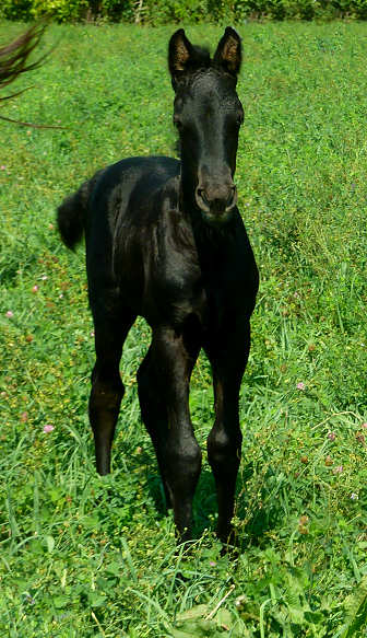 Jewel delivered her all black exquisite filly by Evan on August 30th, 2012. Her registered name is Olivia of Horsemeister. She is registered with Friesian Heritage Horse. Olivia is 75% Friesian, she will be tall, blue black and have the fantasy hair so desired. Her tail is the longest thickest tail we have ever seen on a newborn and we have seen a LOT of newborns. She is for sale price $5000.00 SOLD