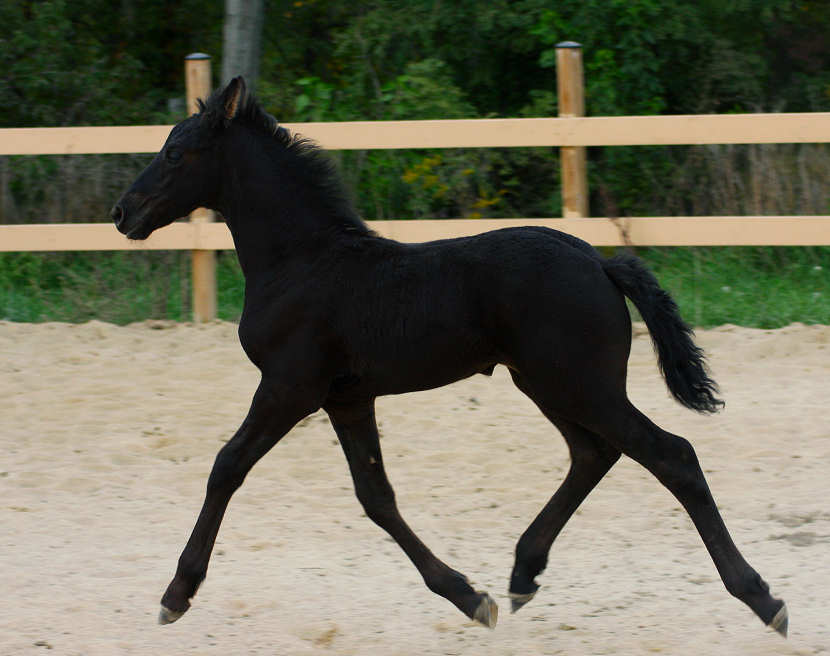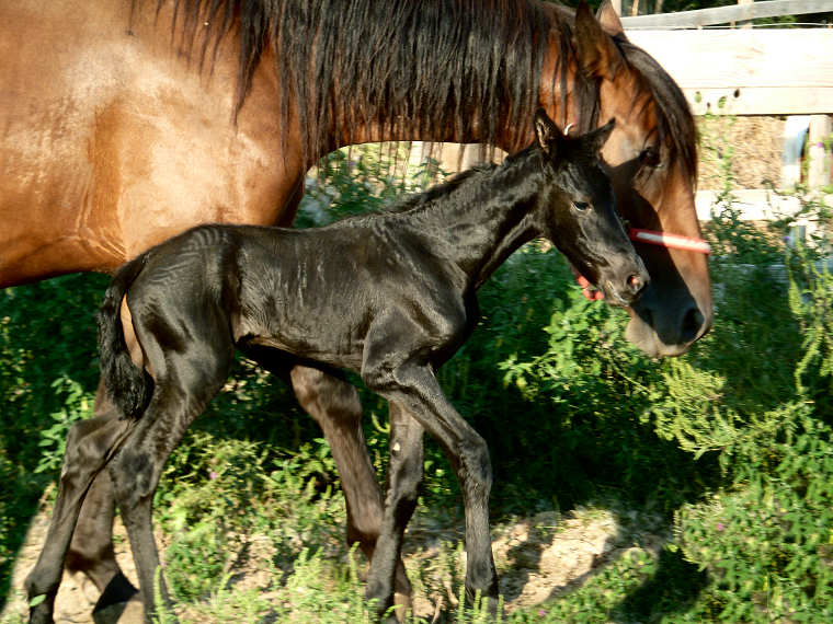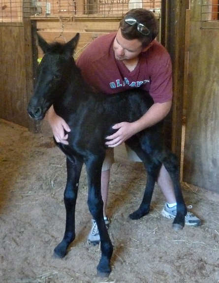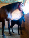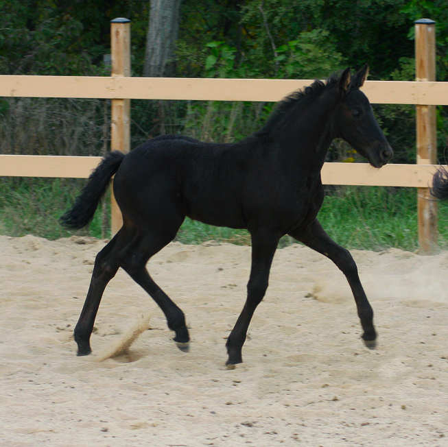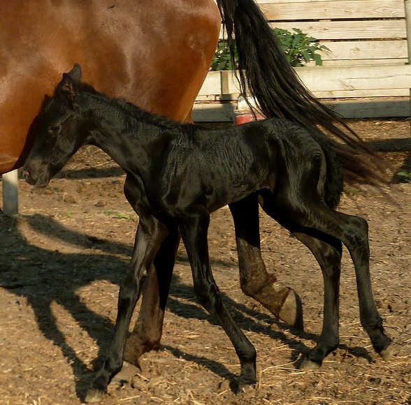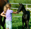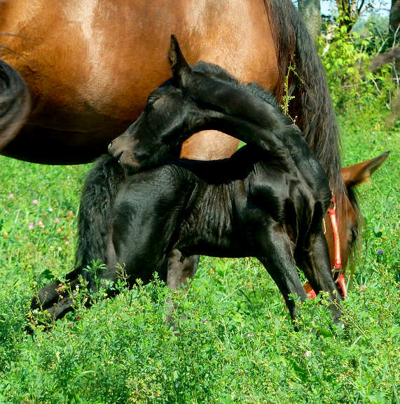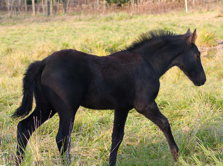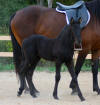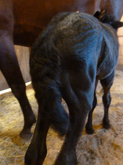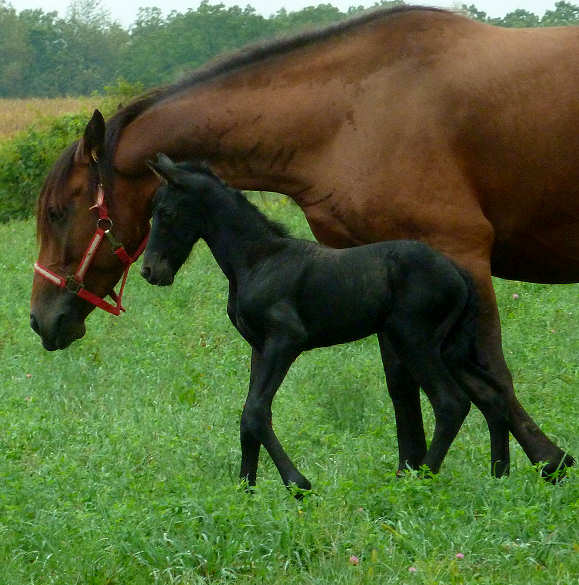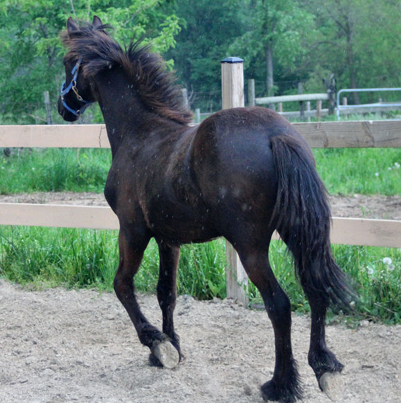 Jewel delivered her all black exquisite filly by Evan on August 30th, 2012. Her registered name is Olivia of Horsemeister. She is registered with Friesian Heritage Horse. Olivia is 75% Friesian, she will be tall, blue black and have the fantasy hair so desired. Her tail is the longest thickest tail we have ever seen on a newborn and we have seen a LOT of newborns. She is for sale price $5000.00 SOLD