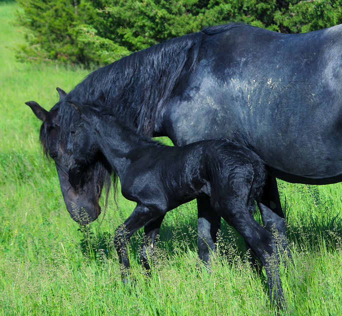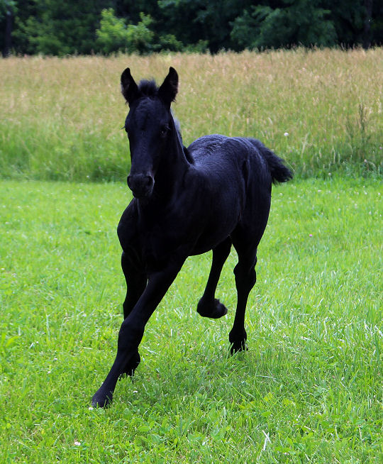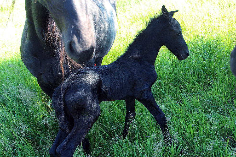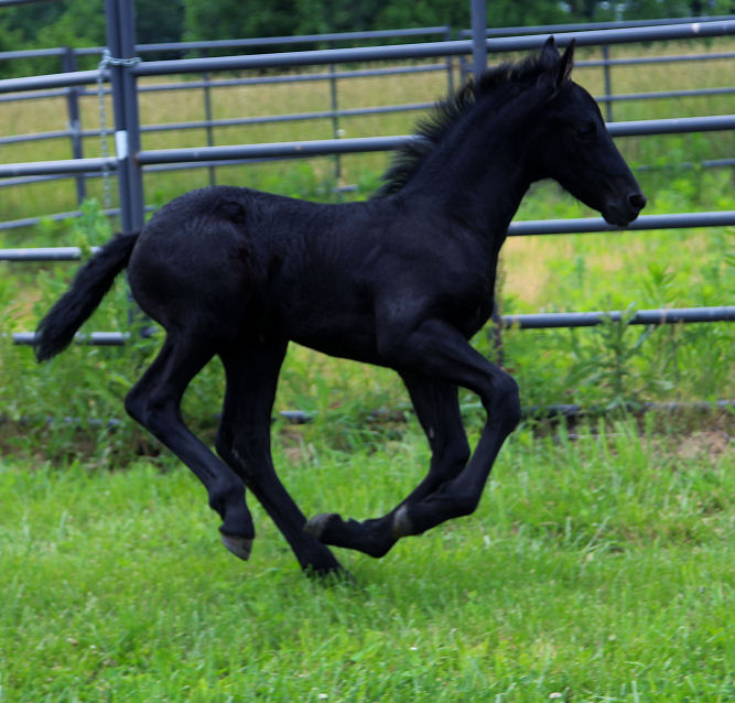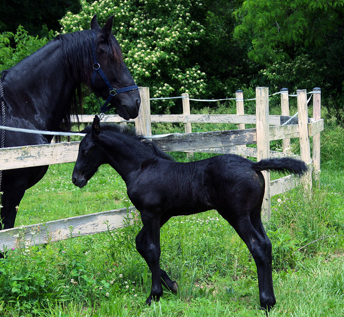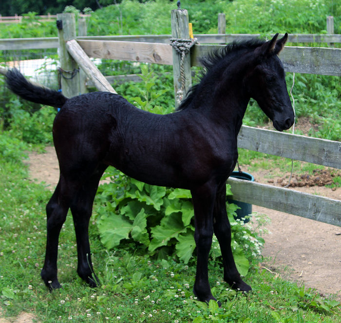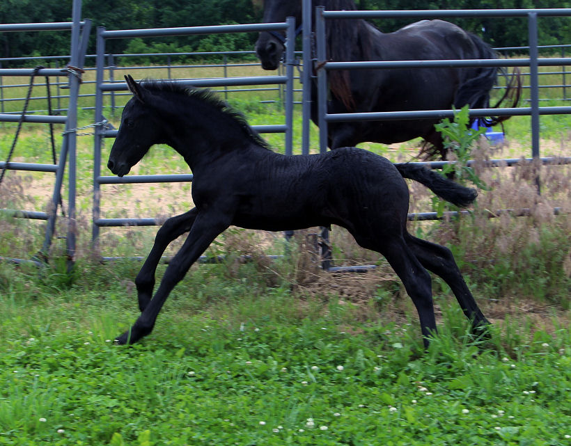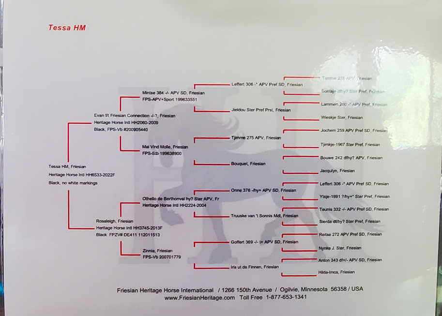 Born May 23rd, 2022 out of our purebred Friesian mare Rosaleigh by our Friesian stallion Evan. Tessa was retained to be part of the wonderful horses of the Horsemeister Herd. Pictured above March 1st, 2024.