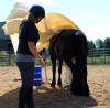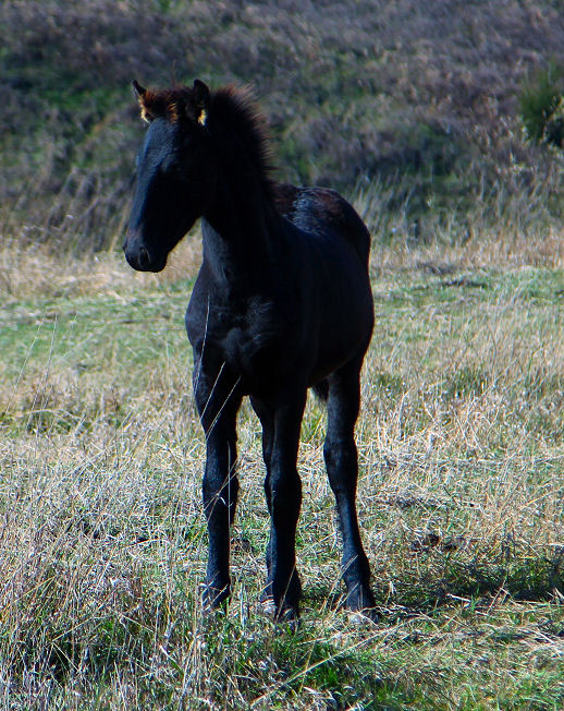 Pictures below taken at 6 days old. This colt had some diarrhea so was given IV's to make sure he did not get dehydrated. You can see the shaved part on his neck where the IV was inserted. He is strong and healthy and growing like a weed. He should end up over 16.1 hands and will have lots and lots of HAIR!