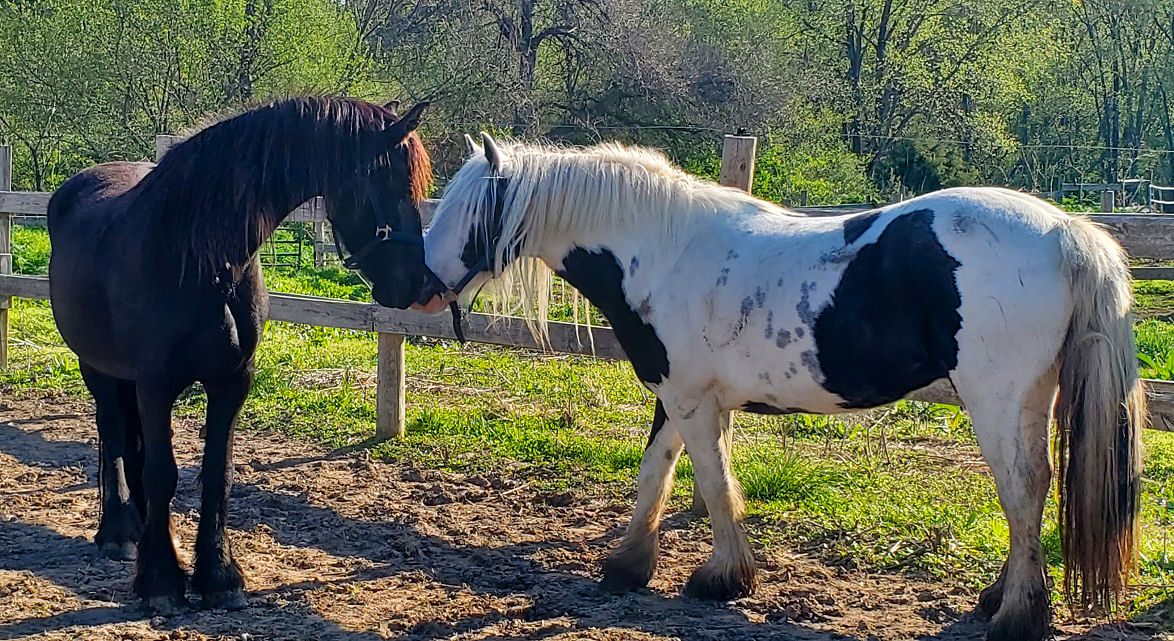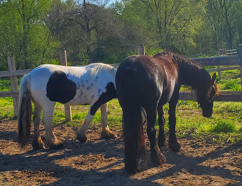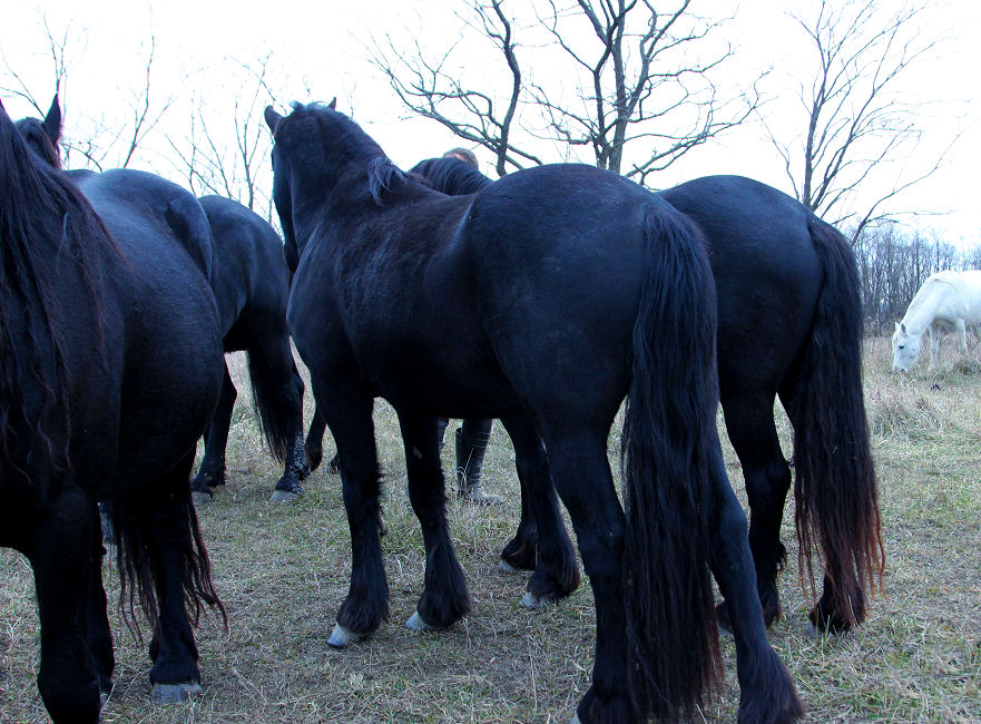 Tatiana was sold as a weanling, we were able to acquire her back Sept 3rd, 2017 scroll down for pictures of Tatiana as a foal, the day after we got her back, in training with Rhoda and at Middle Grove with the herd. Tatiana is pictured below at Middle Grove with the herd Dec 21st, 2017