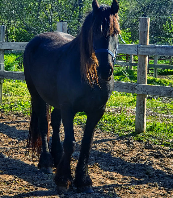 Tatiana foaled June 29th, Purebred Friesian mare 2014 registered and DNA'D with Friesian Heritage Horse International. Out of Marika W by Evan. Beautiful mare with thick long mane and tail. Big movement (after all she is an Evan daughter) Tatiana will be bred back to Valiant the spring of 2024 for a 2025 foal. Tatiana is pictured below on April 22nd, 2024