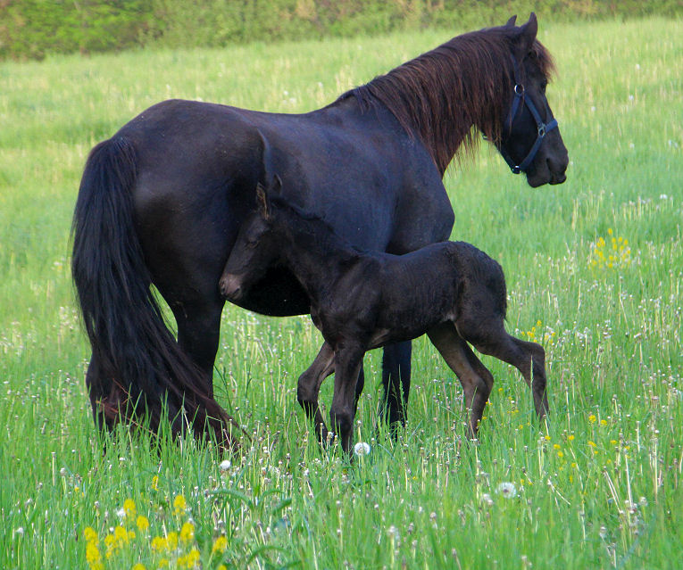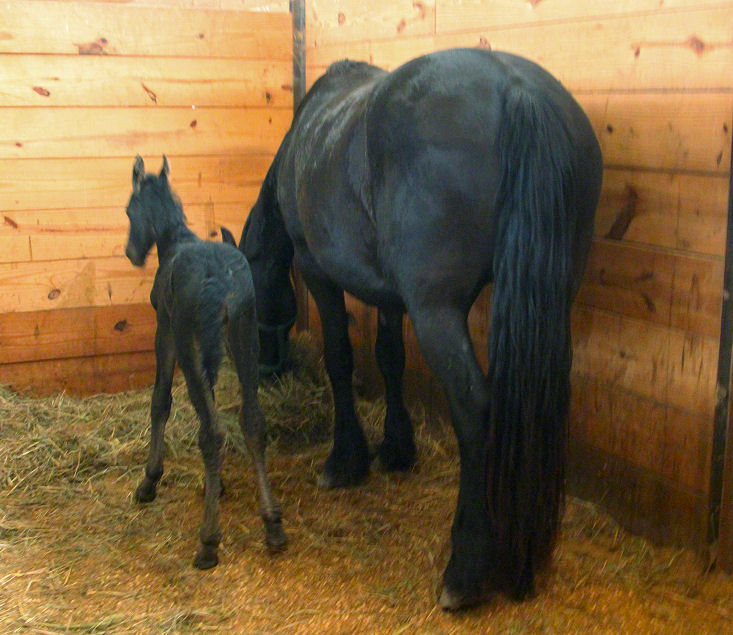 Tatiana was bred back to Valiant and delivered a purebred Friesian FILLY April 17th, 2023 Filly only for sale SOLD Pictures below taken shortly after birth.