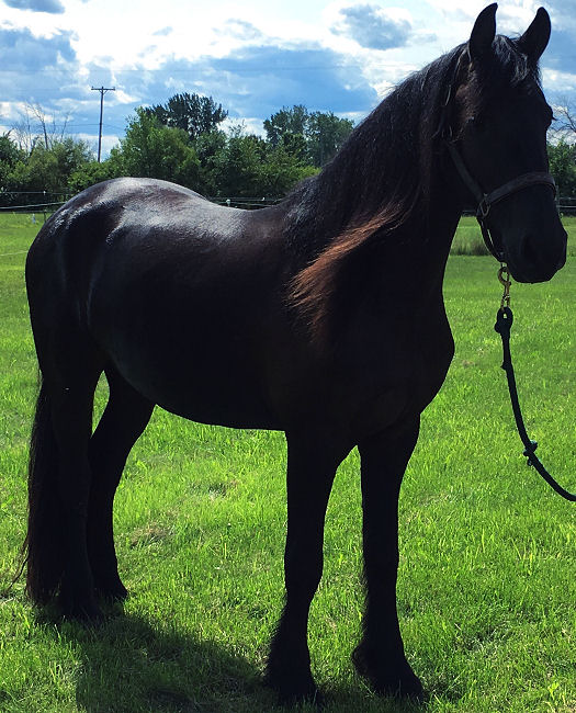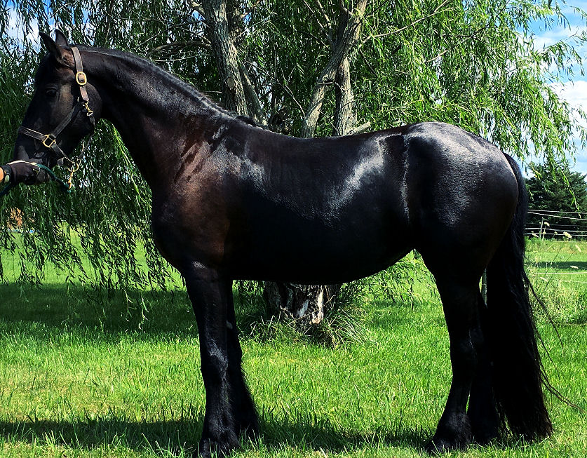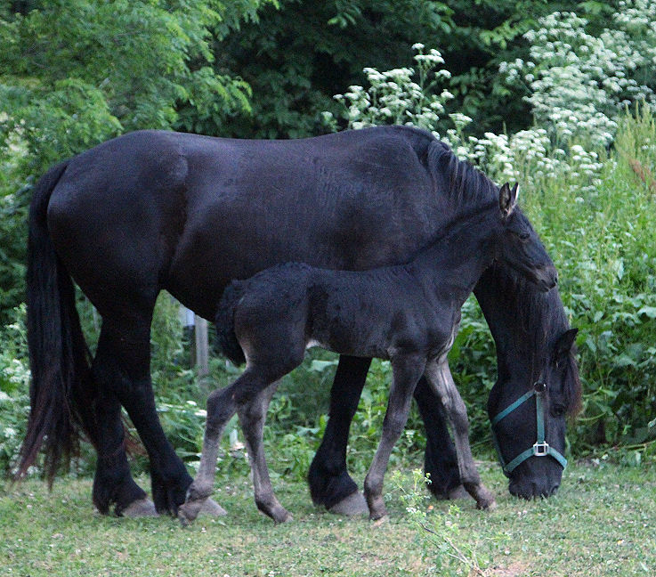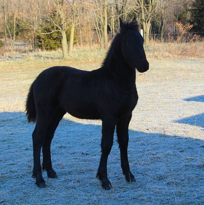Ivan is an all black beautiful colt born Aug 17th, 2018 out of our purebred FHH registered Friesian mare Tatiana by our Friesian stallion Valiant. He is registered and DNA'D with Friesian Heritage Horse papers are in hand. He is very friendly and loves people. He is well behaved, stands tied, leads and loads. Ivan is for sale SOLD For updated pictures of Ivan click HERE.