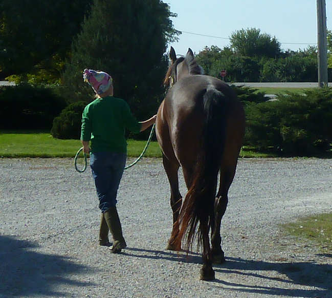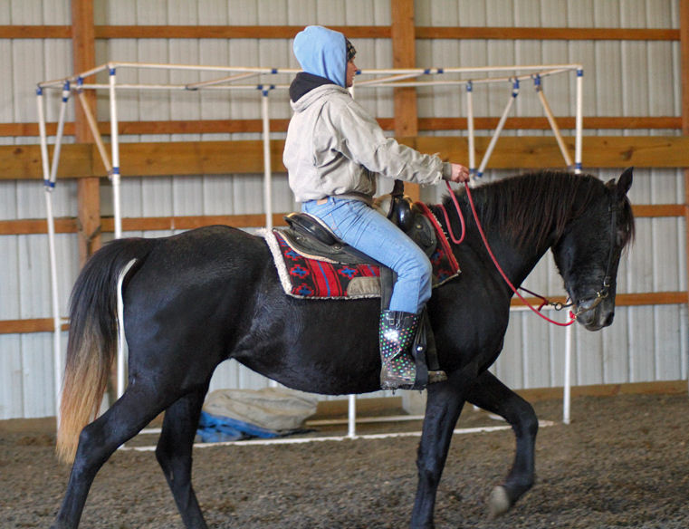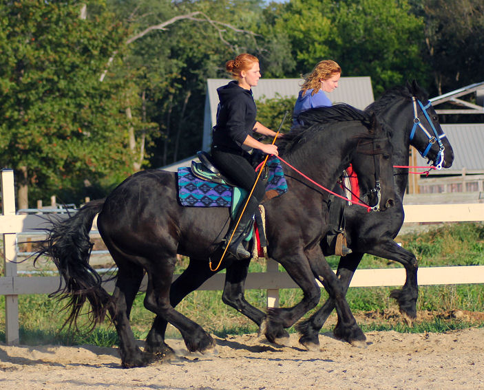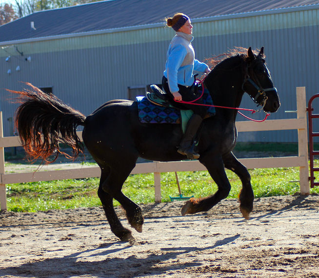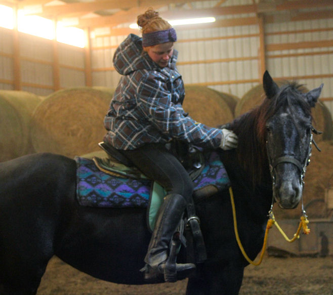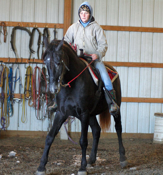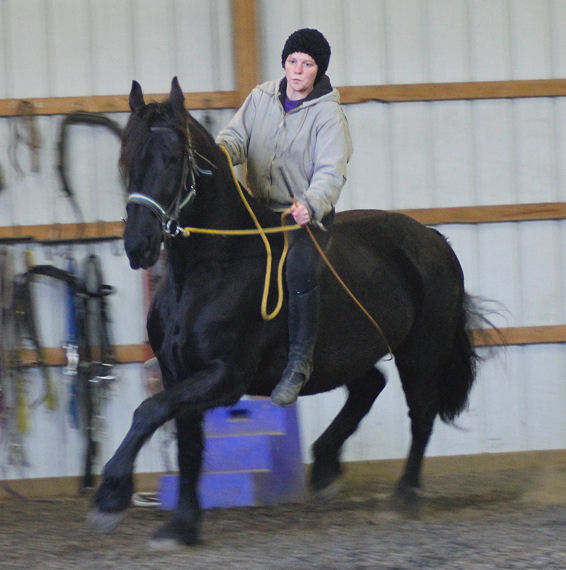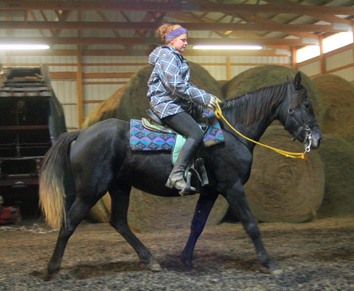 Pictures below Emily is training Mike's new Thoroughbred mare.