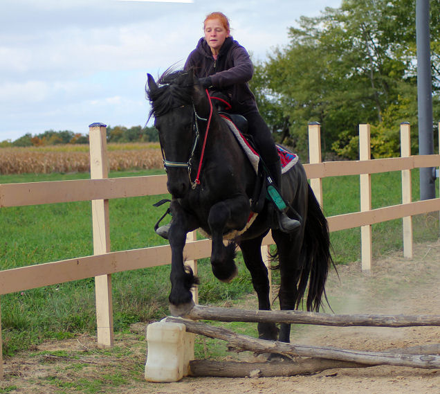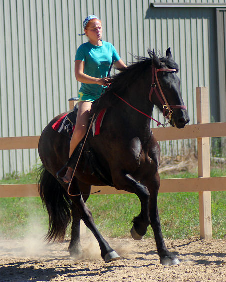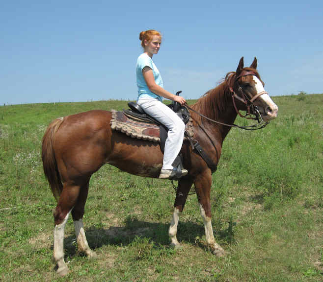 We met Emily when she was 14 years old. Our son David was serving at an orphanage in Mexico and called to ask if we would invite her over to ride, explaining he met her in Mexico and she really likes horses. We didn't know Emily's age but when she got here she was taken to Middle Grove and thrown up on Grace our big TB mare. Emily surprised us with how talented, balanced and fearless she was. Karin was so pleased she told her she could come anytime to ride. That's when Emily said, "I can't drive, I'm only 14 years old." Emily was then told we would bring her a horse each summer and come get it when the pasture was gone.