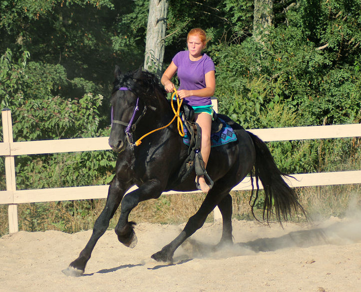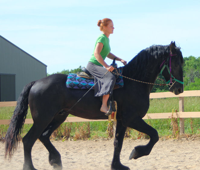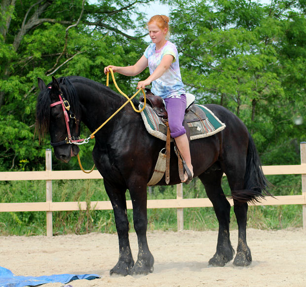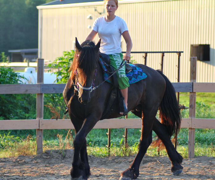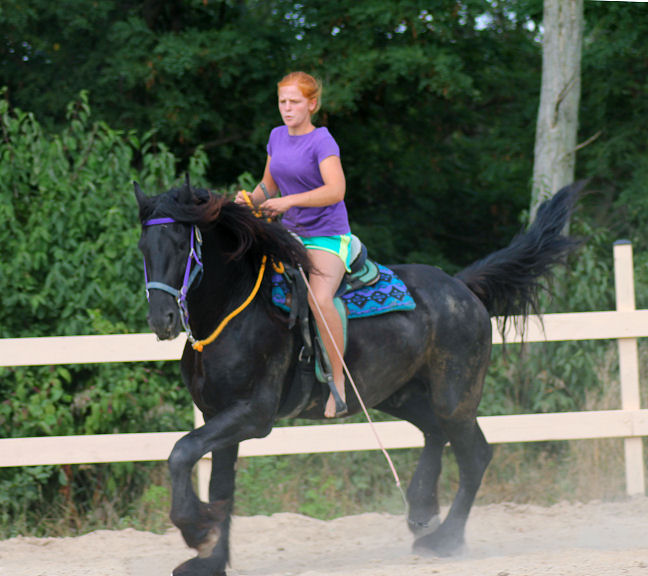 The first horse we sent was a hard one, we called her Big Sally. Sally was a big16.3 hand Percheron x Morgan mare 4 years old and not made to work or mind. She was barn sour, not aware of her feet and would get in ones personal space. At the end of the summer Big Sally was going well under saddle for Emily, they spent hours riding the country side.