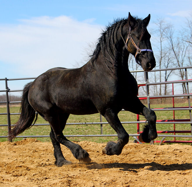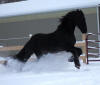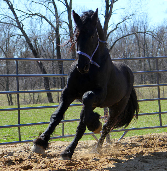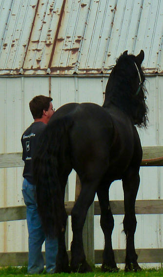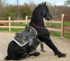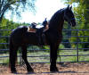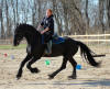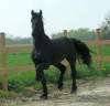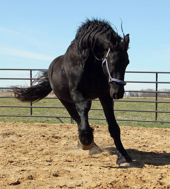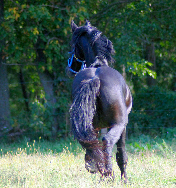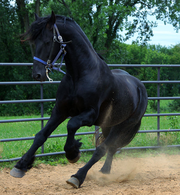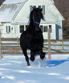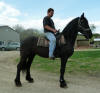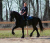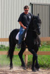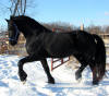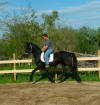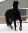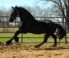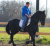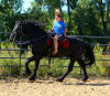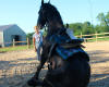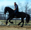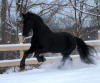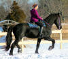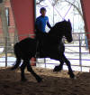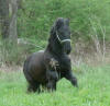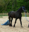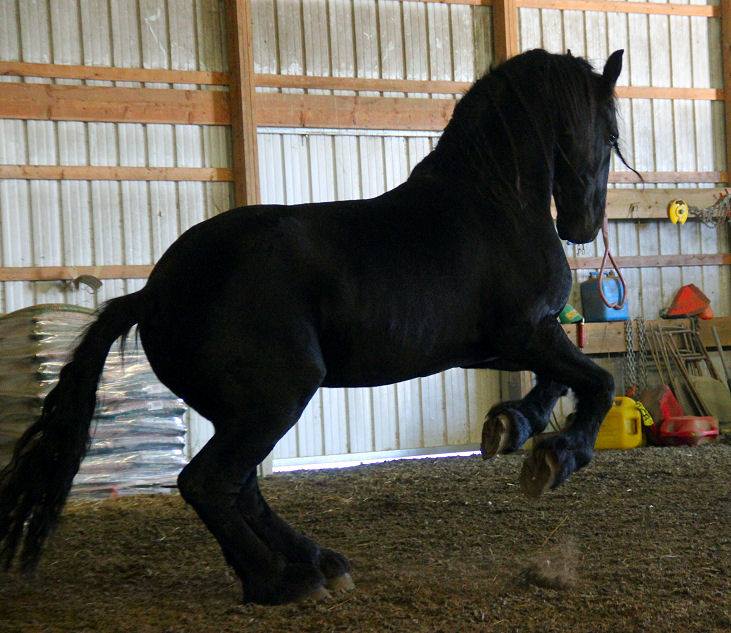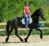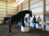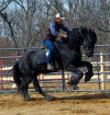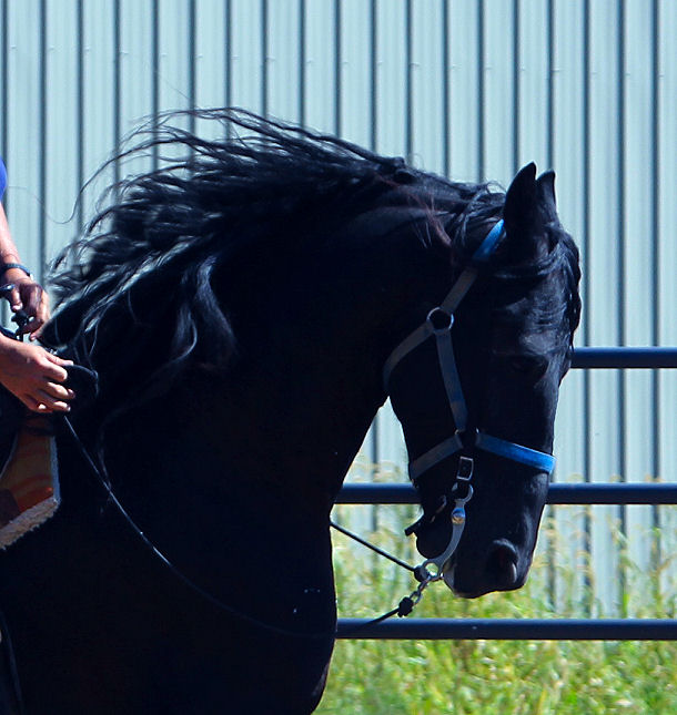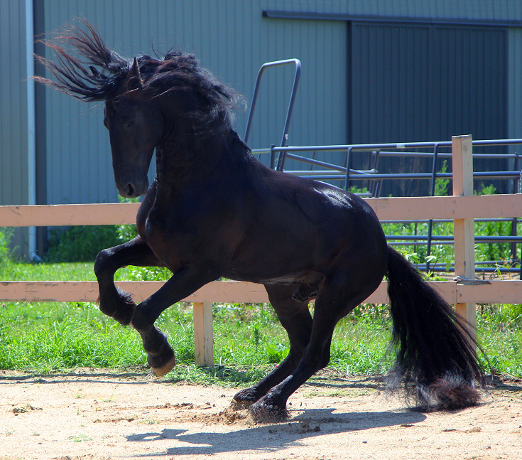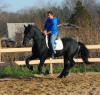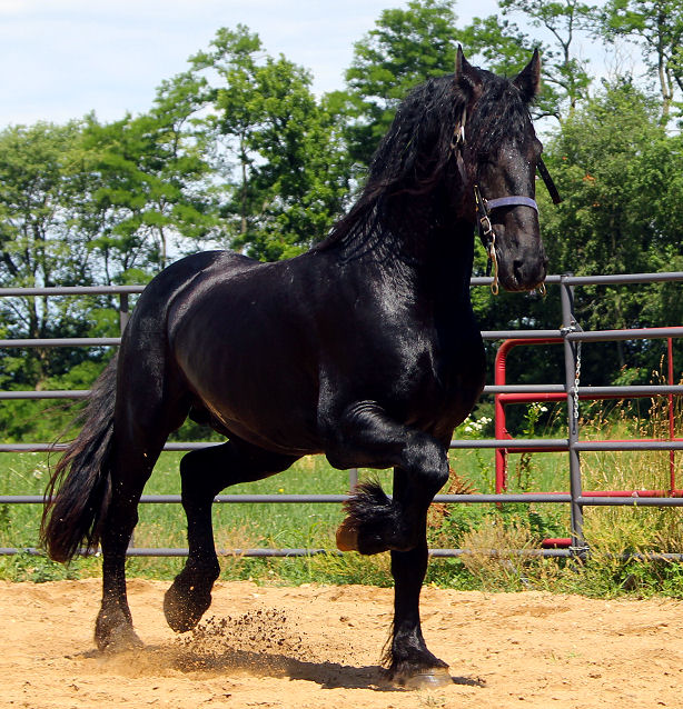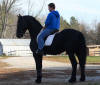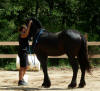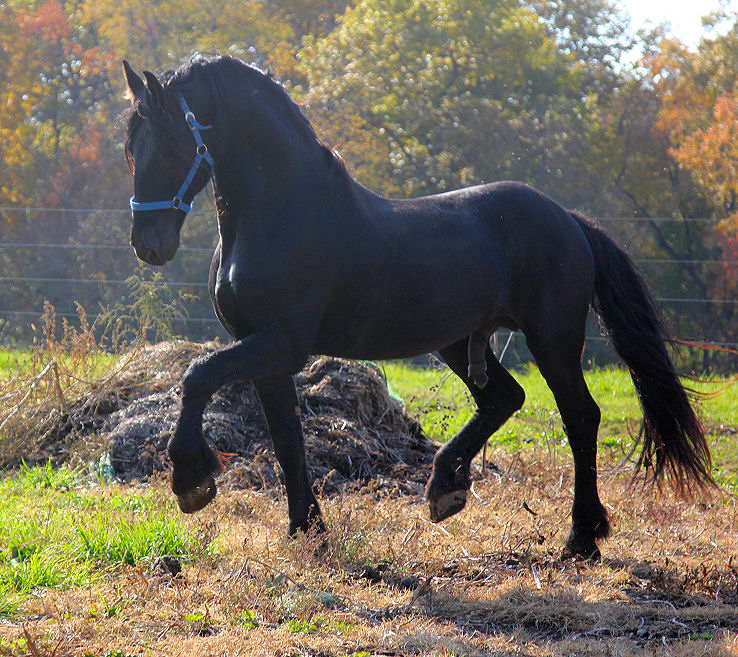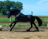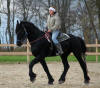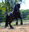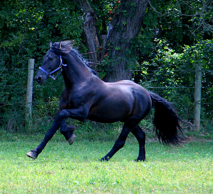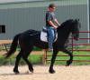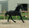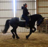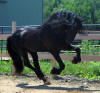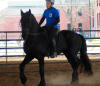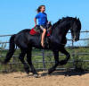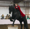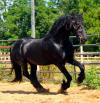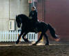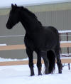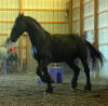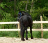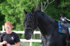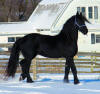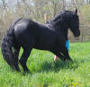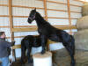 Valiant is out of Jenis JJ and by Raven. He is 19 months old in the pictures posted. He has been shown and loves to show off. He is very well behaved. At his young age he already is an impressive Friesian stallion with pedestal training and is learning the Spanish Walk. Valiant has amazing movement, wonderful disposition and the blue black color of his sire and dam!
