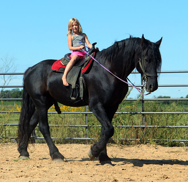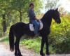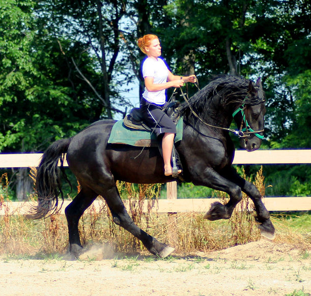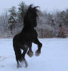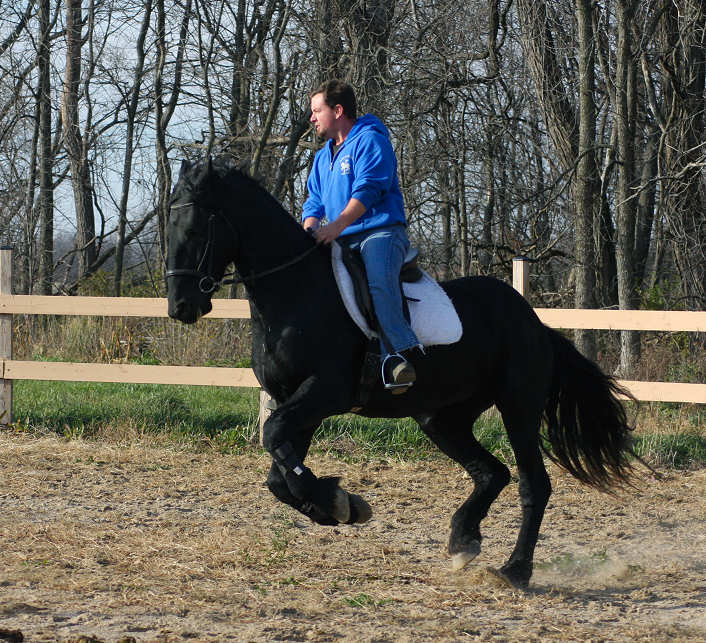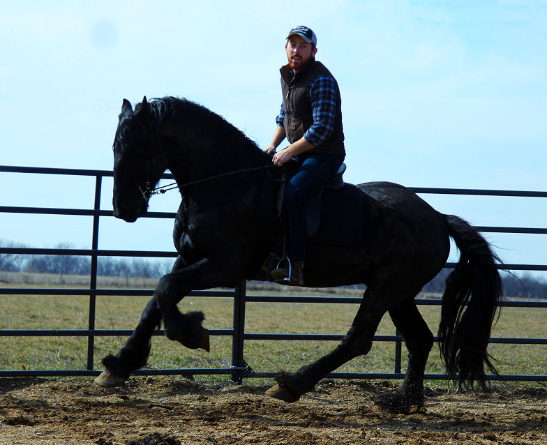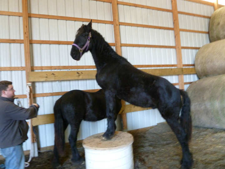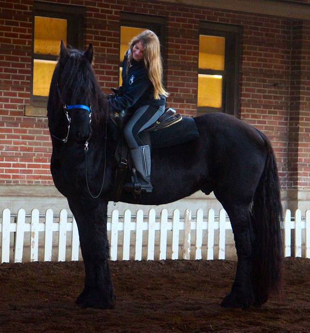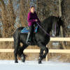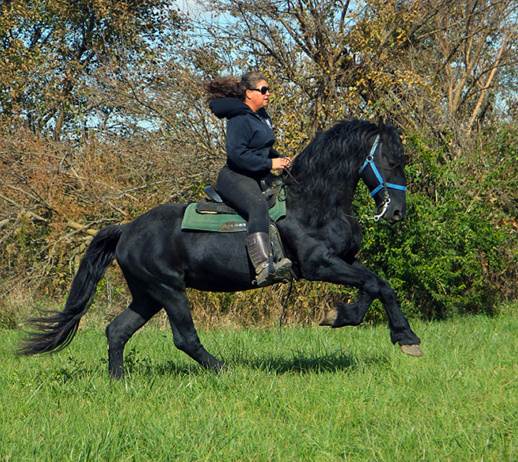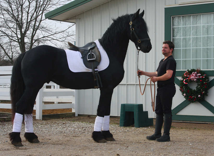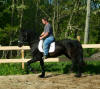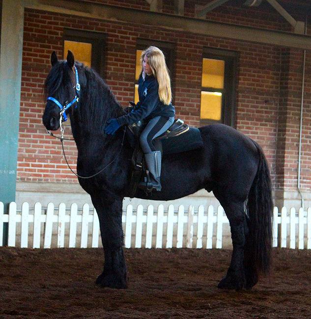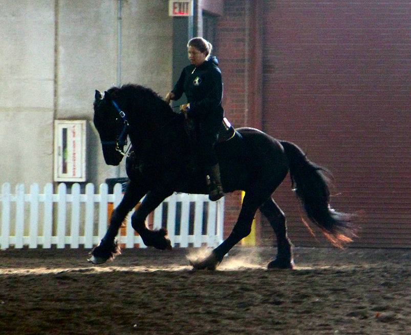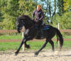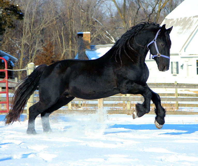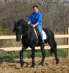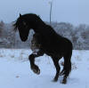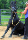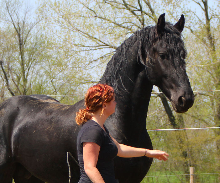 Valiant is out of Jenis JJ and by Raven. He is 19 months old in the pictures posted. He has been shown and loves to show off. He is very well behaved. At his young age he already is an impressive Friesian stallion with pedestal training and is learning the Spanish Walk. Valiant has amazing movement, wonderful disposition and the blue black color of his sire and dam!