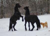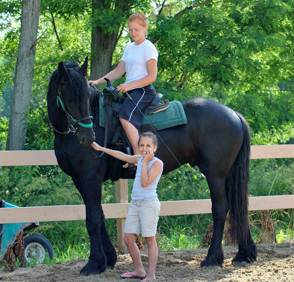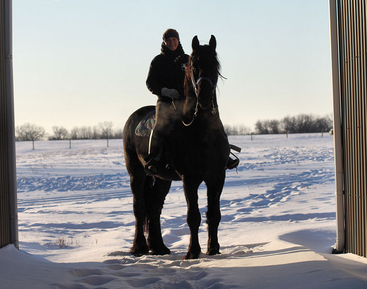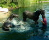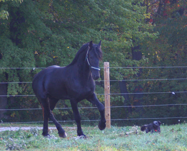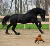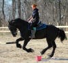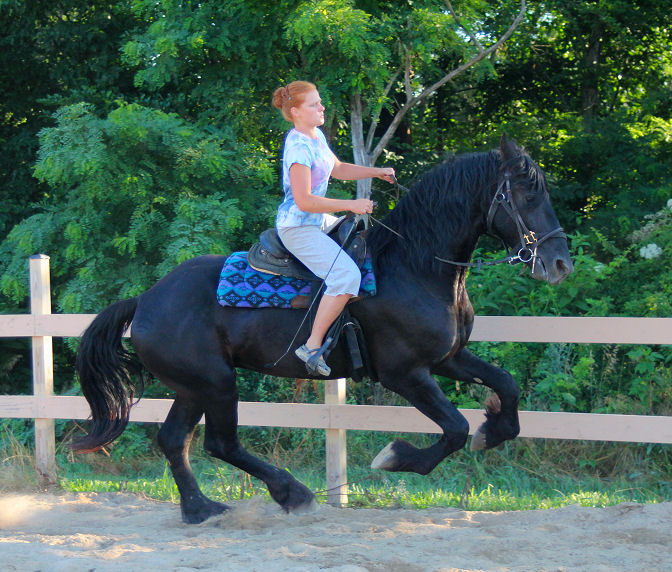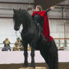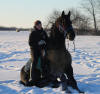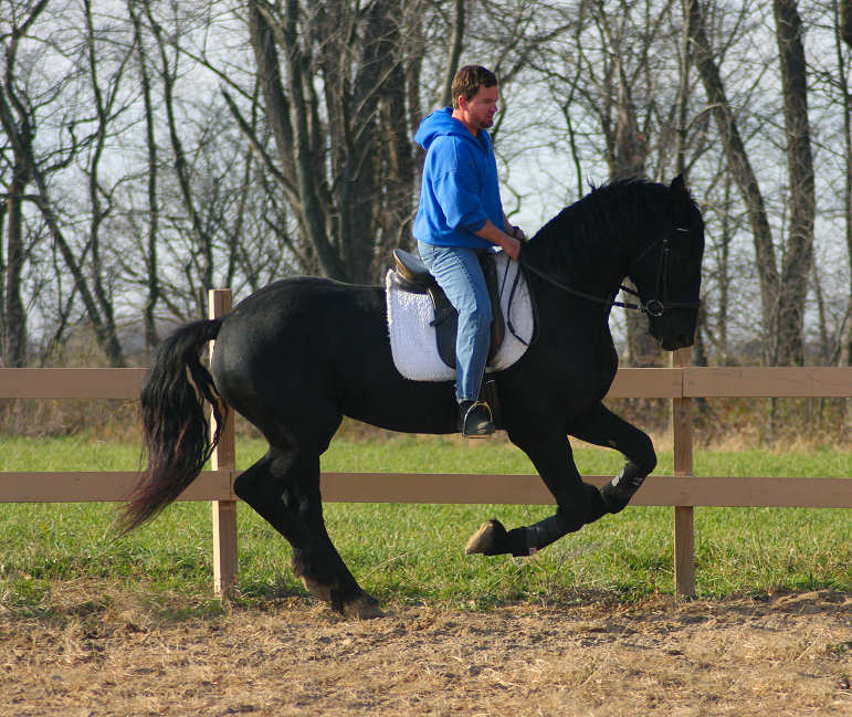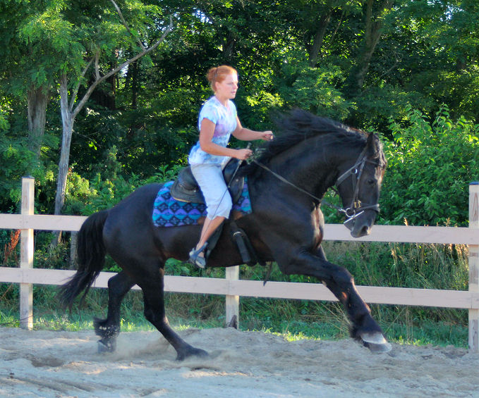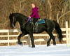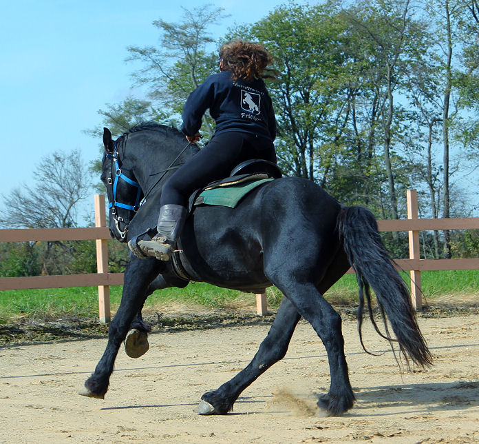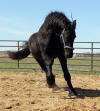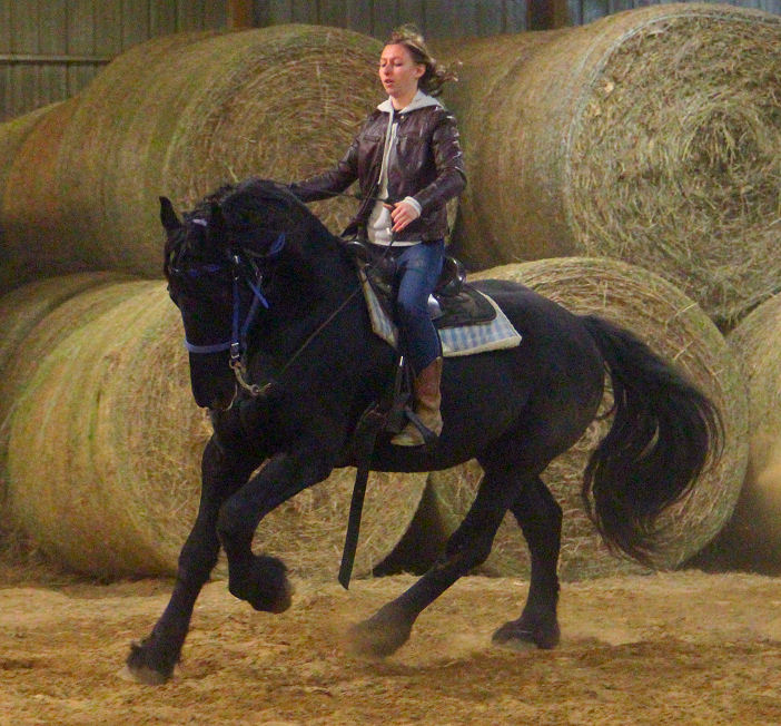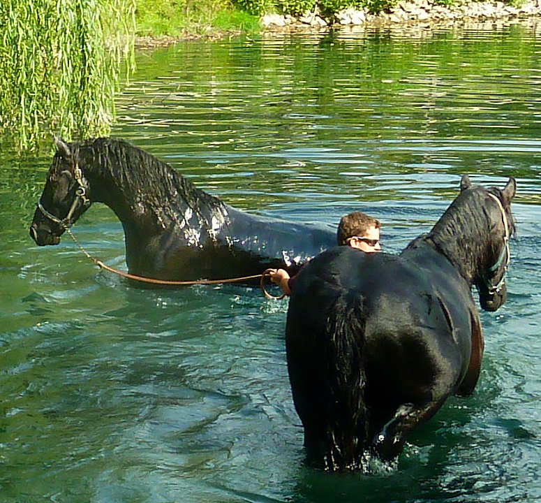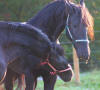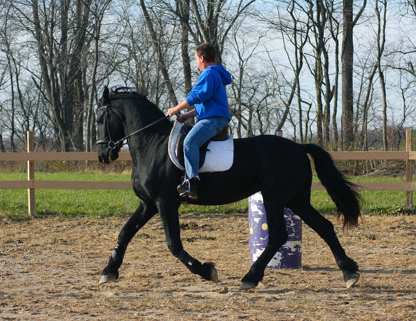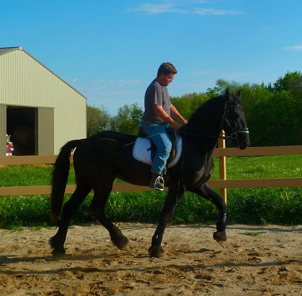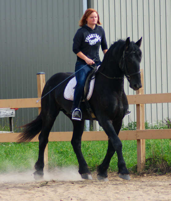Valiant is out of Jenis JJ and by Raven. He is 19 months old in the pictures posted. He has been shown and loves to show off. He is very well behaved. At his young age he already is an impressive Friesian stallion with pedestal training and is learning the Spanish Walk. Valiant has amazing movement, wonderful disposition and the blue black color of his sire and dam!