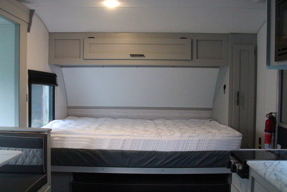 Sleeps 4 adults and 4 children comfortably for a family with children OR spread out and 4 adults can each have their own bed. Murphy queen bed that has a 4 inch gel pad, 2 double bunks with water proof mattress pads, slide out dinette folds down for another queen size bed. Fully self contained.