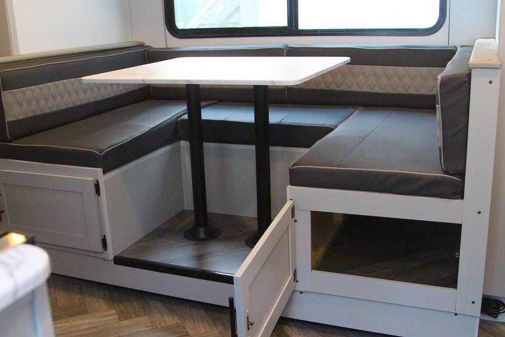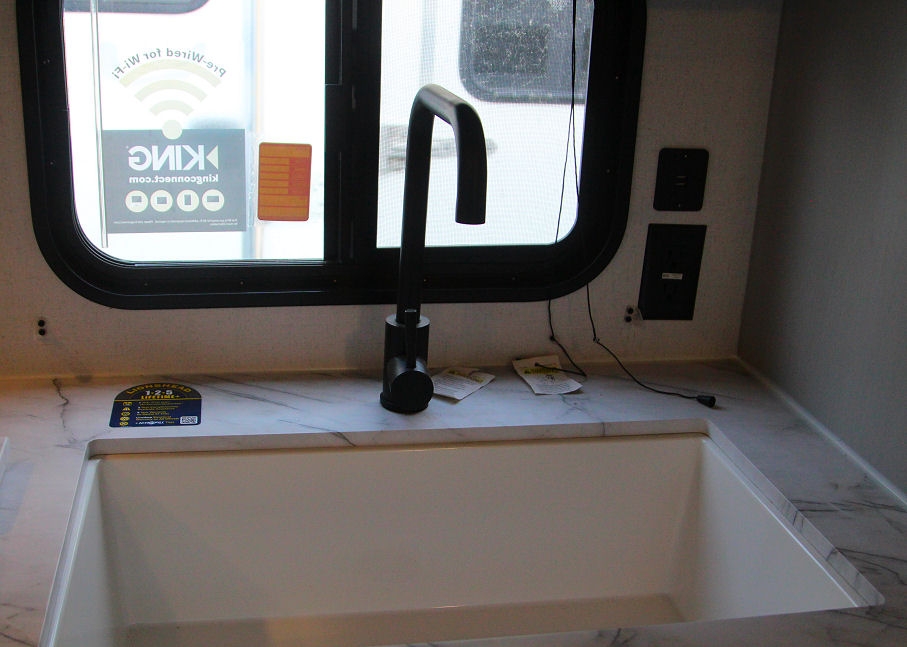 12 foot power awning, 11 cubic foot fridge, huge freezer, Panoramic window at dinette, Sink covers for extra counter space, Outdoor kitchen with gas griddle and mini fridge, Outdoor hot cold shower, 9' x 12' outdoor camping mat, hot dog forks, wheel chucks, sewer hose, fresh water hose, extra electrical extension cord.